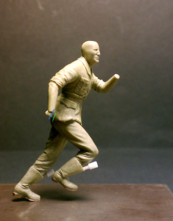 Ну, можно его немного в пояснице нагнуть. Тогда будет более пригибающийся на бегу солдат. Хотя бегать по разному можно.