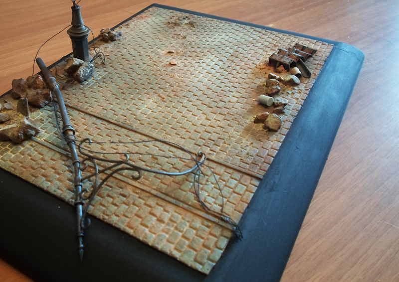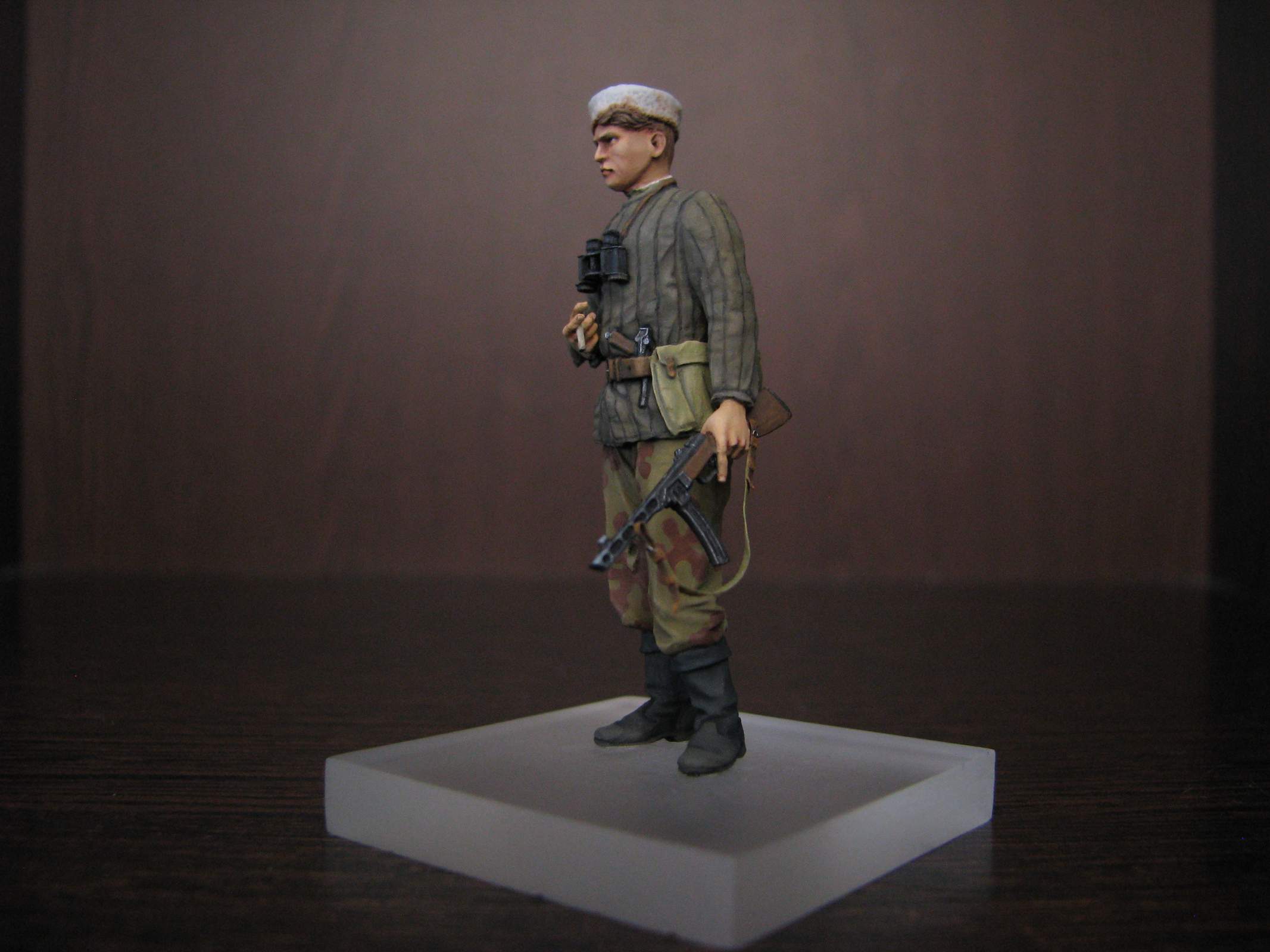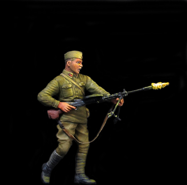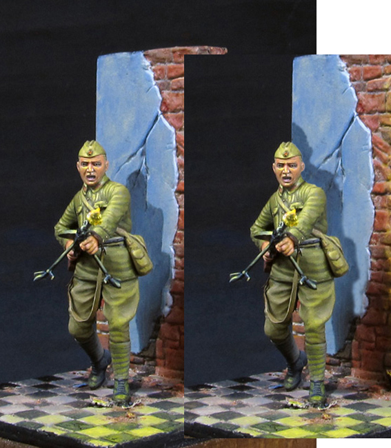 А по тени на стене от пламени выстрела, да, соглашусь – тут Вы малость промахнулись.Похоже, рисовали её до установки фигурки на подставку
