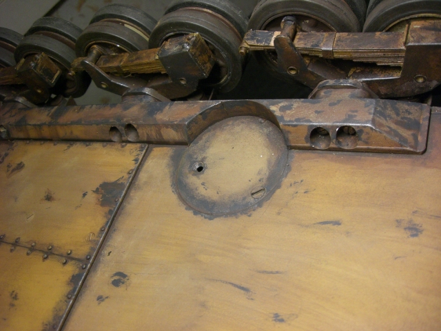 Ну вот с днищем закончил теперь и за броню можно взятся.И здесь повозится надо-ещё незакончил но вот пока что получается.Ещё ржавчину наложить и инструмент шансовый-думаю завтра закончу.