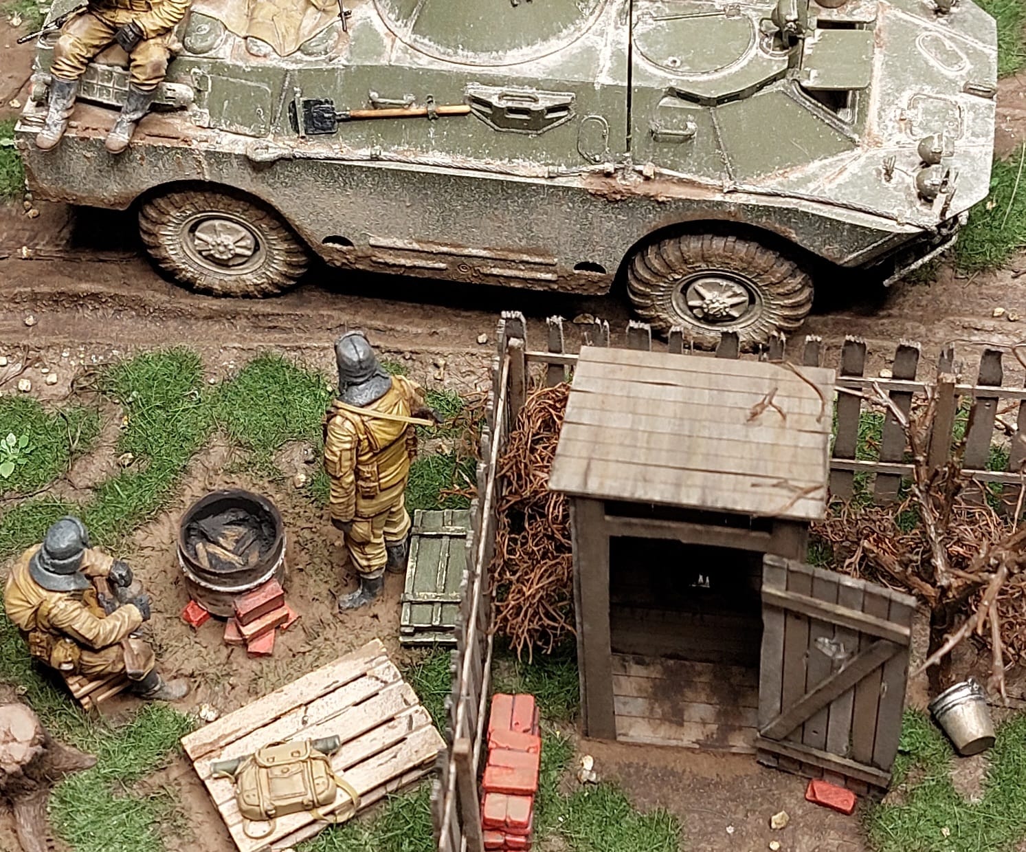 Делаю подставку для фигуры (120 мм). По задумке, за спиной фигурки будет часть сруба и пучки соломы. Вот столкнулся с проблемой/задачей - нужно ли красить натуральные материалы при создании виньеток/диорам/подставок?