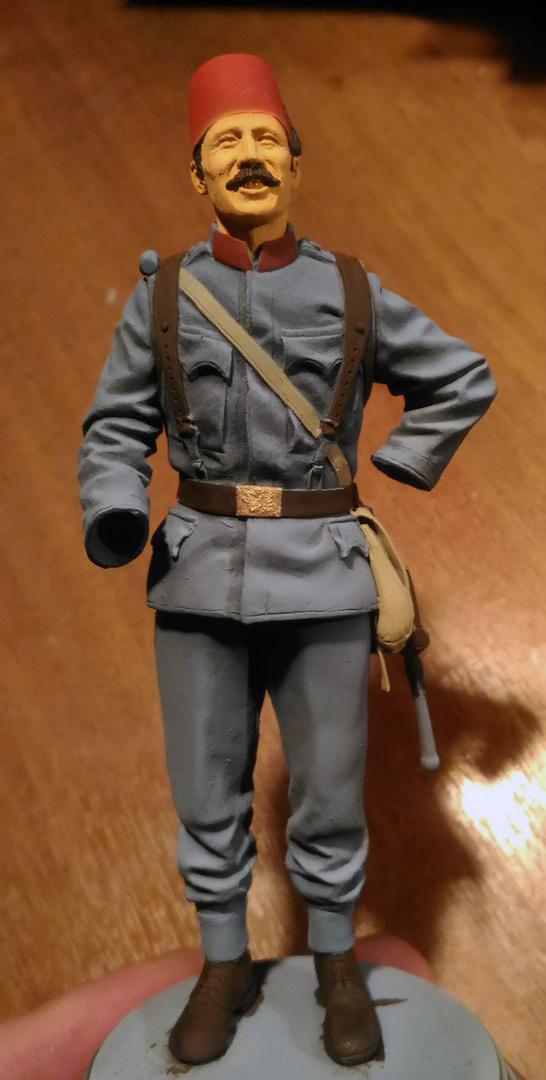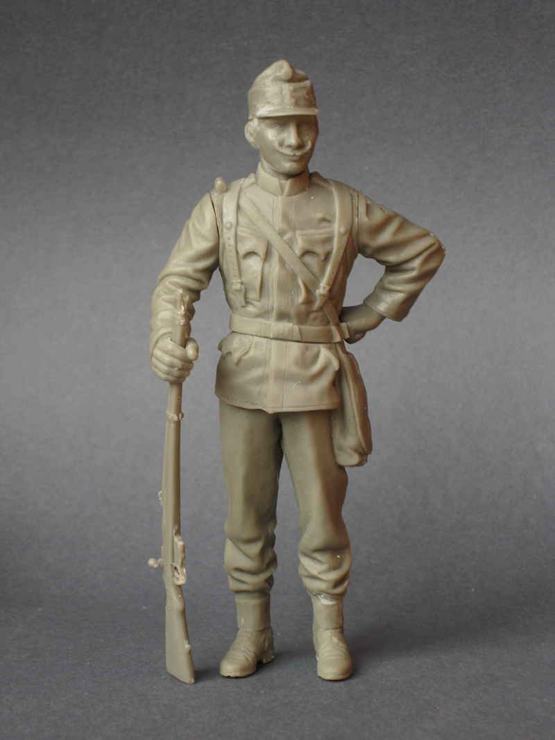 Купил я недавно Корсаровского австрияка на ПМВ.Вот уж не думал что эта фигурка такое гомно лютое.Мало того что там с анатомией полный пипец,так еще и с качеством отливки то же самое.Так как альтернативы нет,а австрияка на начало войны хочется,пришлось ее полностью перепиливать.Были отрезаны ноги в районе ремня,ботинки от ног,сумка с боку.Сточены плечи и руки в районе плеч. Нарощены ноги,жопа и бока в толщину.Переделаны ботинки,а так же все замыленные пуговицы и заклепки.Сделана новая сухарка.Зашкурено все что можно и нельзя.Голова и кисти рук сразу в помойку полетели,заменил их на свои.Так же решил австрийца сделать босняком,надев феску.