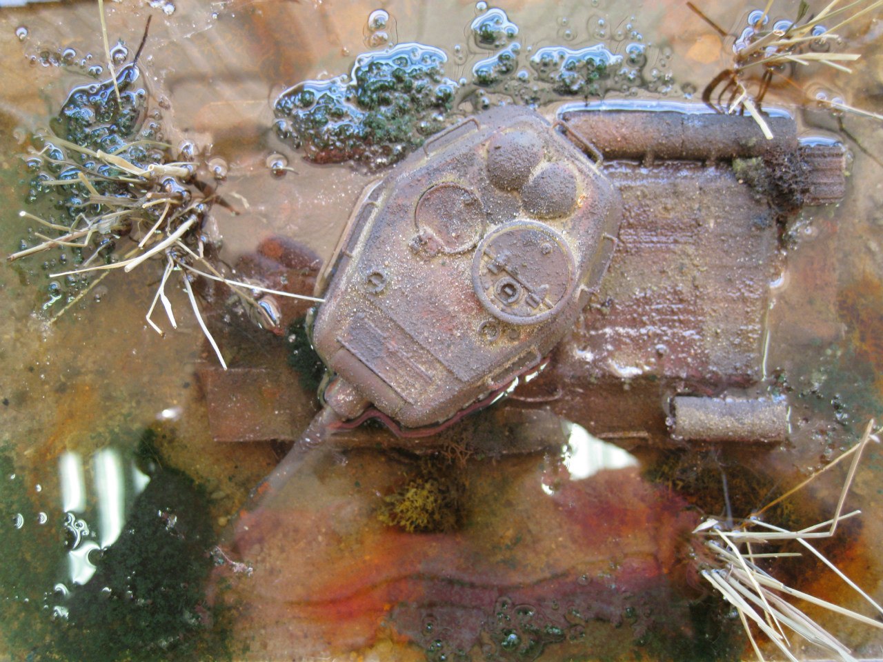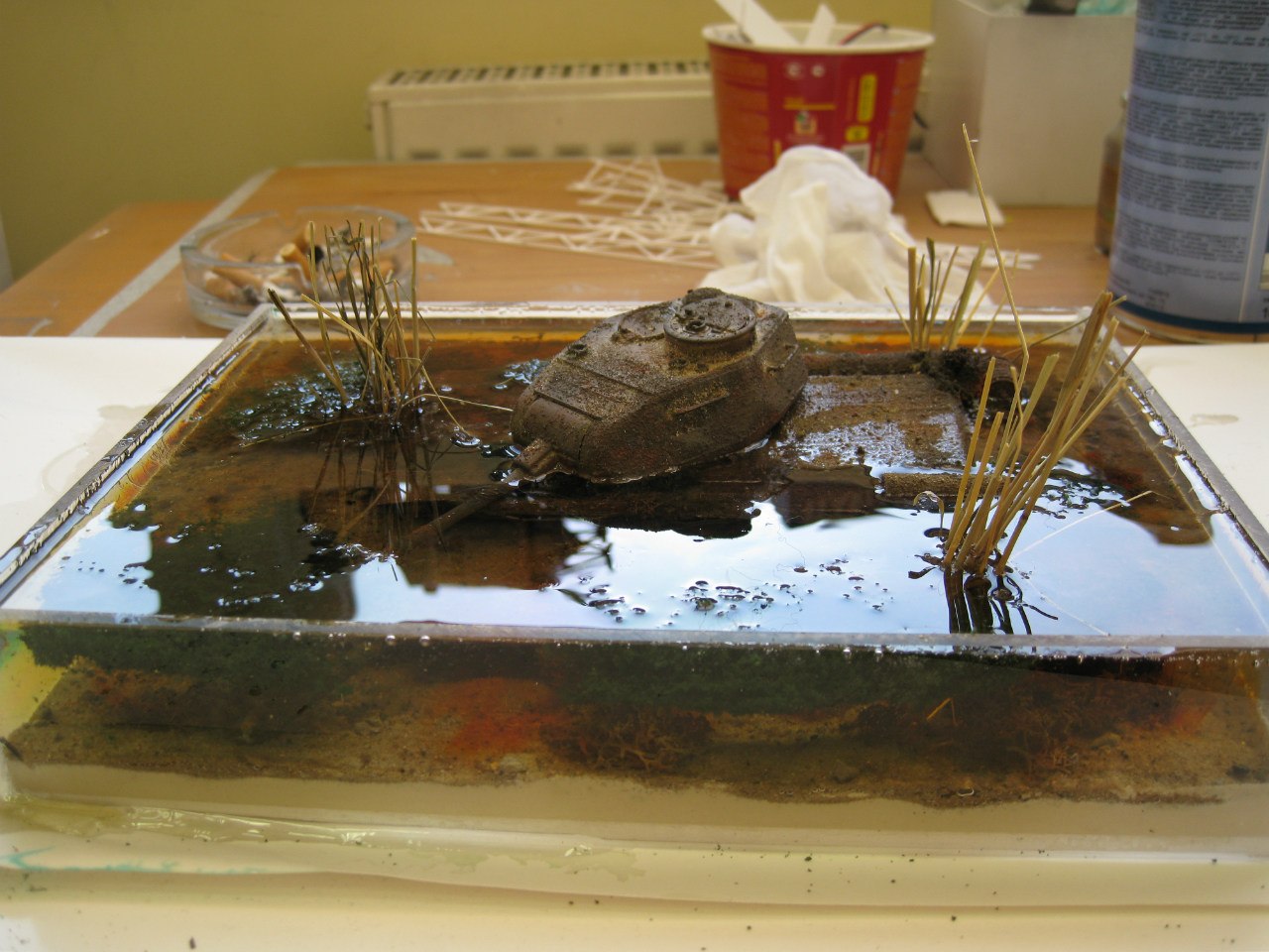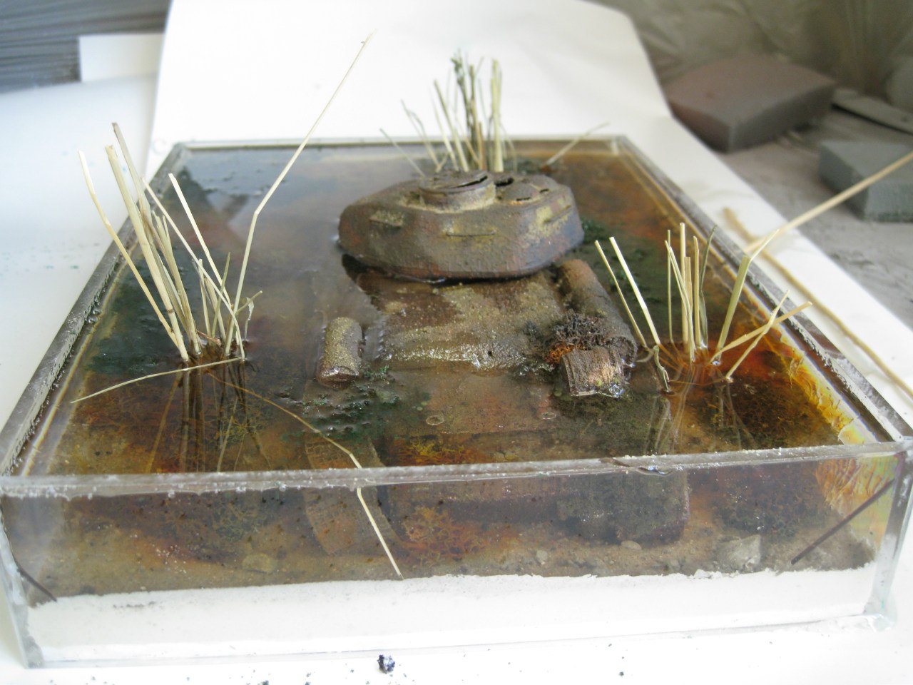 максим андреевич, Ржавый танк получился хорошо. А вот растительность болотно-речная ну совсем не в кассу. В смысле очень грубо выглядит. С Вашими золотыми руками ну совсем не "сочетается". Вот для примера: http://www.diorama.ru/workshop/features/207/ или камыши как на этой работе: http://www.diorama.ru/gallery/dioramas/3850/ С Вашим уровнем такое изготовить не проблема ИМХО. С уважением.
