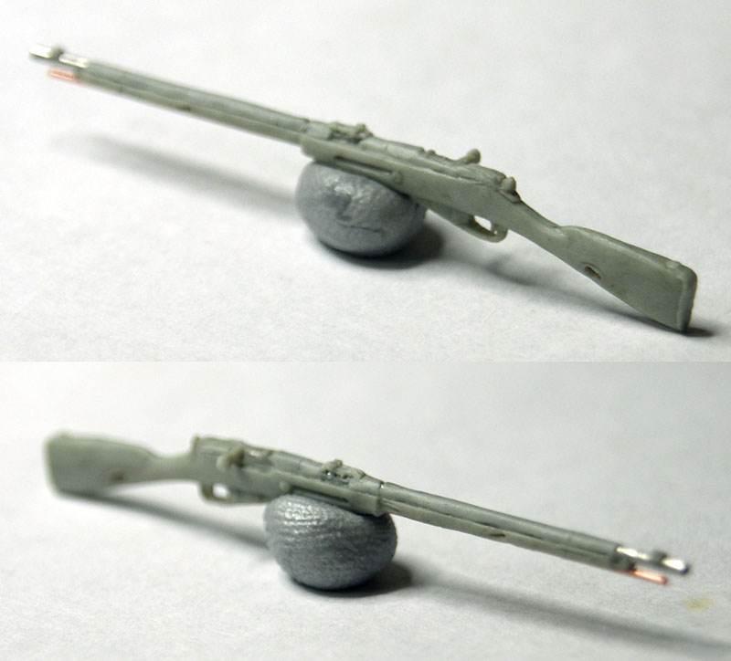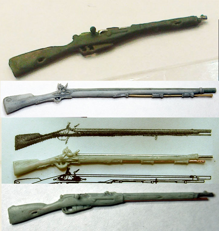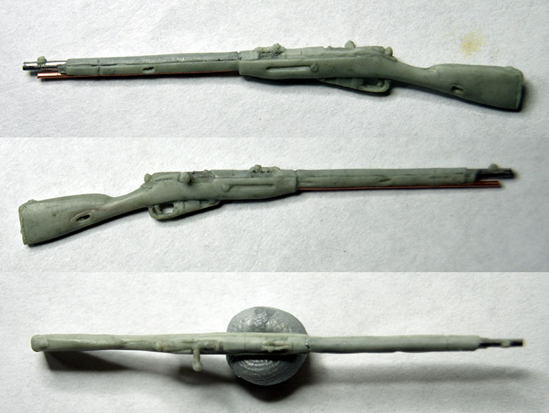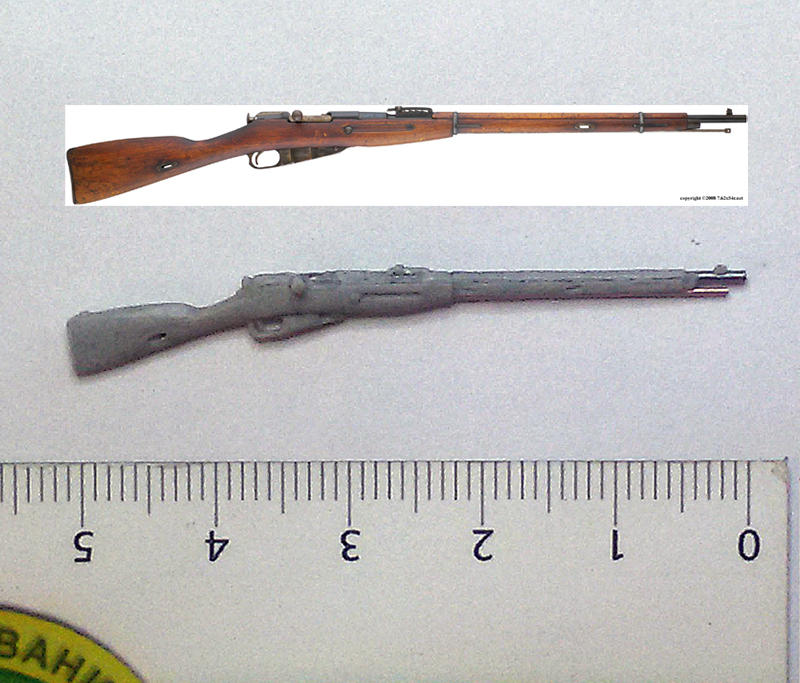 Сам сейчас занимаюсь оружием, хотя и немного в более крупном масштабе, поэтому могу подсказать одну вещь - первое впечатление от модели задаётся её общим видом. Который, в свою очередь, зависит от контура модели. Поэтому основное внимание нужно уделять деталям, создающим этот самый контур. Именно поэтому в этой винтовке сразу по глазам "бьёт" толстенный шомпол, мушка, и странного вида затвор, а уж потом кривые огромные "глазки", неровное цевье и прочие "конструктивные особенности".