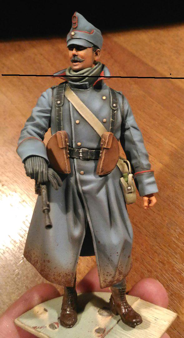 Вот до такого уровня примерно. И вообще, учти,поднятый воротник шинели вообще-то затылок прикрывает.