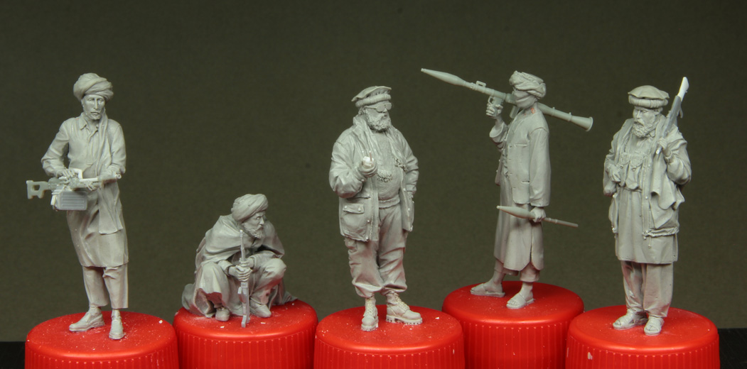 Решил начать с афганцев - очень живописные парни. Дети гор. Можно было бы налепить целую ораву в разномастных красивых восточных одеждах, но пока ограничусь этой пятеркой.