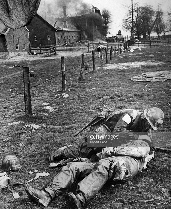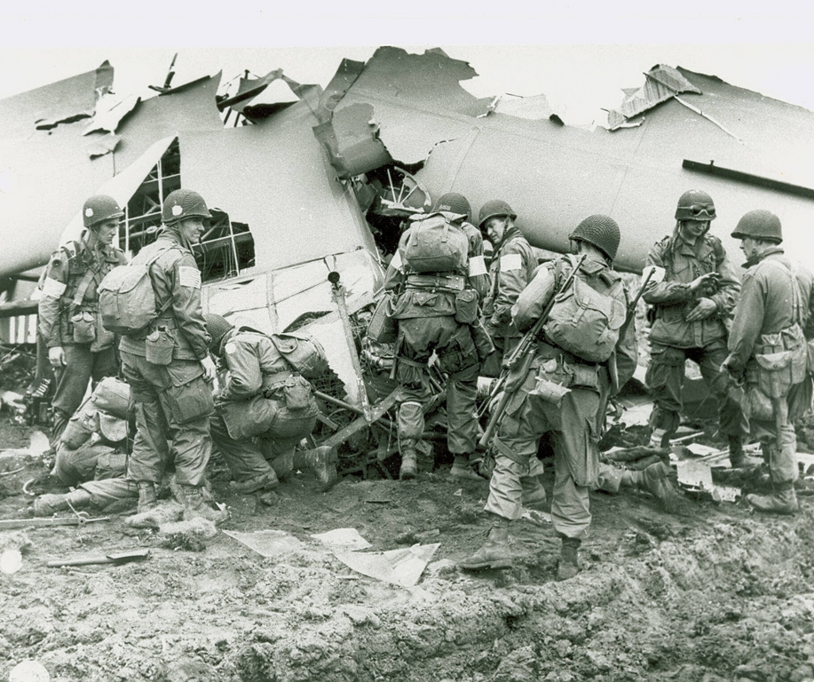 Дмитрий (Баев), я уже написал выше - большая часть фотографий сделана в марте 1945 г. во время операции "Варсити" - у большинства из этих фотографий есть четкая привязка на это время, т.к. они из известного фотосета Роберта Капы, который тоже прыгал с парашютистами. То есть это однозначно не "день Д". Другое дело что ветеран-то был из прославленной 101-й ВДД, а в "Варстити" прыгала 17-я ВДД. Это малоизвестное (расформировали после войны) и не очень боевитое подразделение. Их начали формировать позже чем 101-ю и 82-ю. Они воевали только в Арденнах, где их спешно бросили в бой как пехоту и в "Варсити". Собственно "Варсити" была их первая и последняя высадка, т.е. они были ещё "зелёные" (как десантники) и у них не было опыта 101-й.