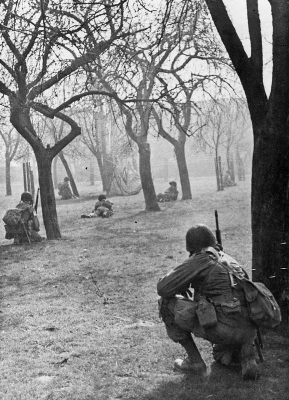 А вот на этой фотографии действительно 101-я в "Маркет Гарден" осенью 1944 г. и у них действительно нет пакетов на касках, что и подтверждает слова ветерана.