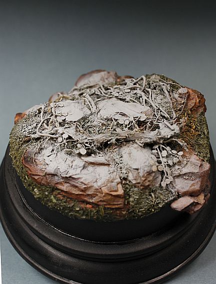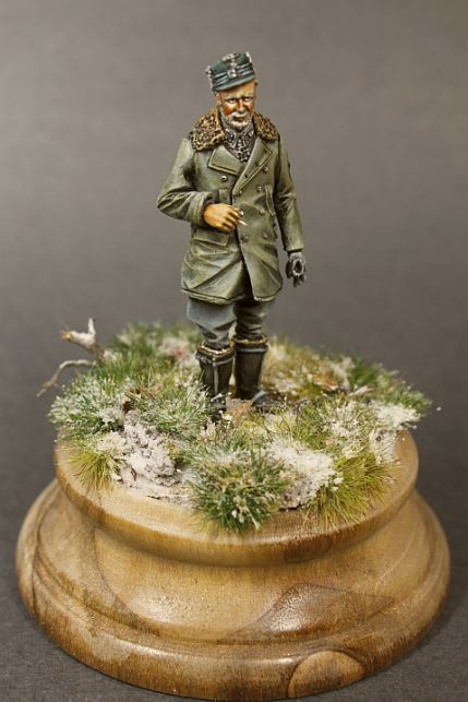 Дмитрий, имхо не так уж и велико основание, больше отвлекает внимание крупный рисунок фактуры древесины. Выбор древесины считаю также немаловажным фактором, да красивая фактура, но отвлекает внимание. Для одиночной фигурки на WWII больше подходят мелкослойные породы (срезы)