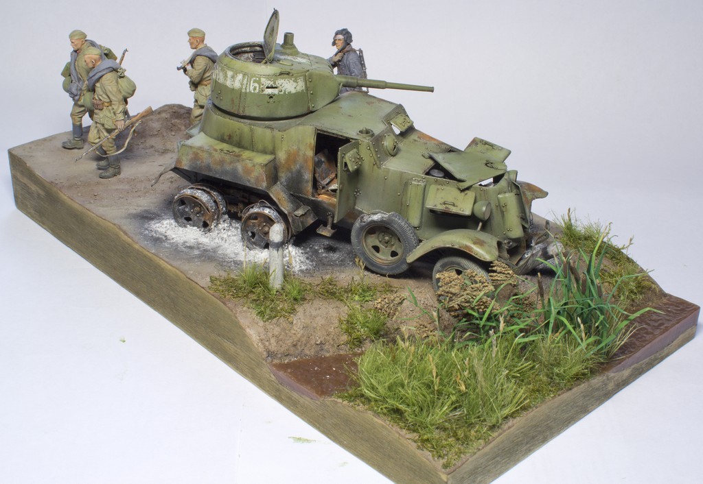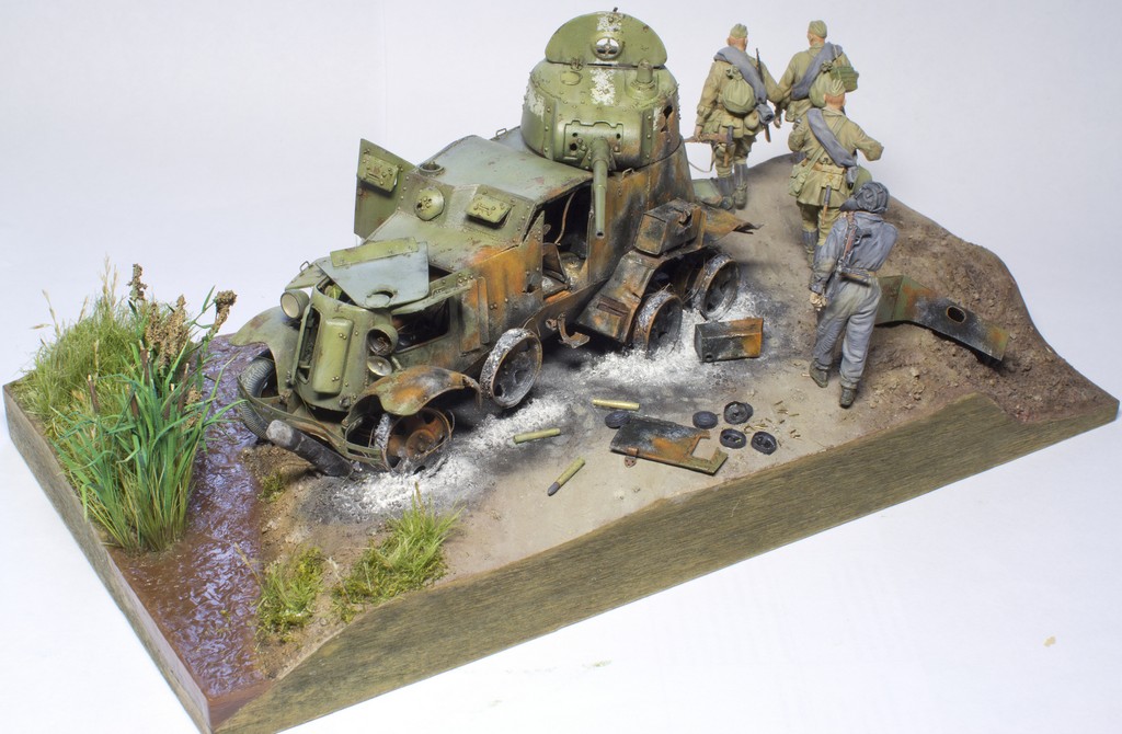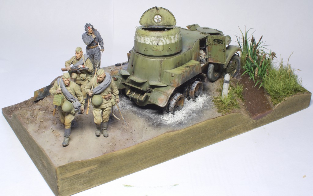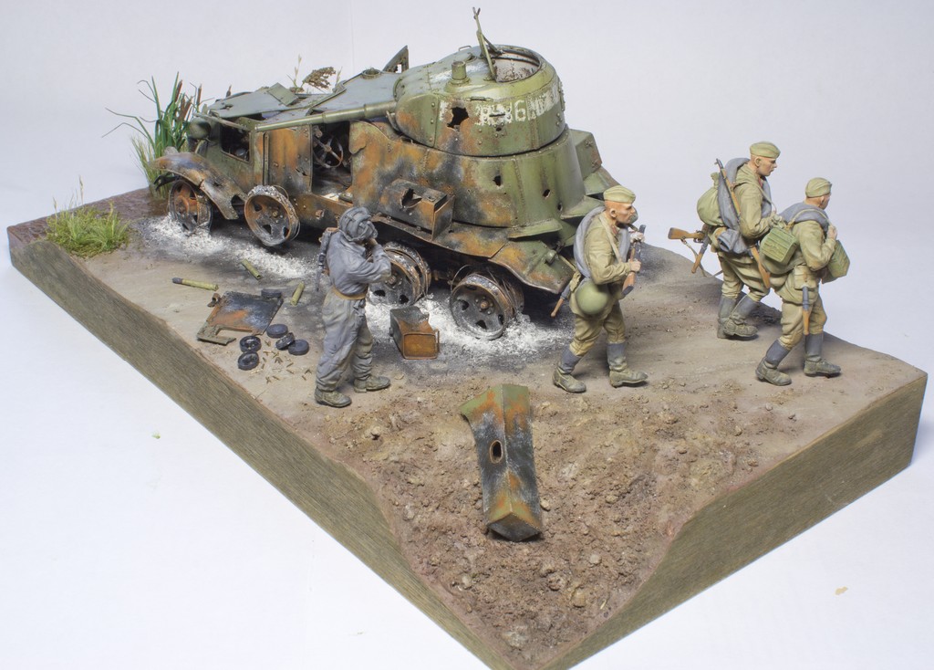 saleh, Добрый день, Андрей. Насколько я понял, ты расписываешь темперой, а с этой краской можно работать достаточно прозрачными слоями.У тебя МЕСТАМИ и в целом фигуры получились светлее и менее насыщены по цвету, чем надо, а это исправить легче, чем если бы они были перетемнены. Попробуй лессировки очень жидко разведенной краской (без белил!)как фильтр или смывка(например красный на лице или зеленый на амуниции). Главное - чтобы получался ровный ПРОЗРАЧНЫЙ красочный слой( менялся только ОБЩИЙ тон и цвет исправляемой поверхности, а предыдущие слои росписи с градацией тонов оставались видимыми, тогда не нужно будет переписывать все заново ). "Заливай" сразу всю поверхность, которую хочешь откорректировать по тону или цвету(например голову или лицо). Края заливки аккуратно растушевывай чистой кистью, чтобы не было видно границы между новым и предыдущим слоями. Там, где (например в углублениях) краски будет излишек, так же выбирай аккуратно сухой чистой кистью(лучше сразу запастись несколькими)- это НЕ ДОЛЖНО смотреться смывкой. Если все правильно получится сделать - в итоге лицо(или другой исправляемый участок) должен поменять тон или цвет (как от светового фильтра), но самого слоя краски не должно быть заметно. После полного высыхания первого слоя может понадобится доп.слой с другим оттенком цвета более локально или исправление некоторых участков. Белила в краску добавляй только в крайнем случае(в самом конце), если где то получится тон темнее нужного и по другому его исправить нельзя. Главное - смягчай края у новых слоев, чтобы они мягче входили в старую роспись и тебе не пришлось все переписывать заново. Попробуй сначала потренироваться на "кошках" - тут главное почувствовать степень разведения краски и то, насколько предыдущий слой позволят ровно положить на себя краску нового. Опять же, можно сначала поработать с аммуницией, а лица и кисти лессировать в последнюю очередь, когда наберешся опыта.