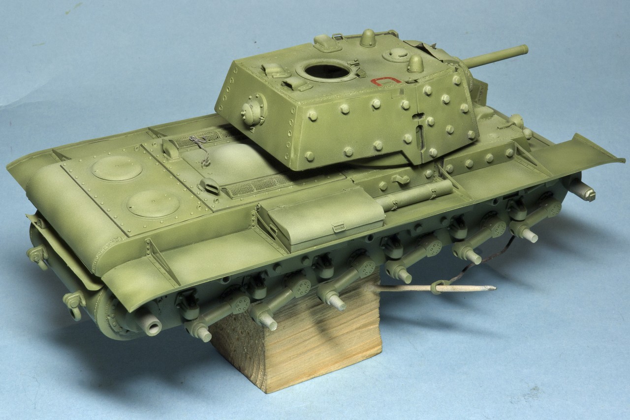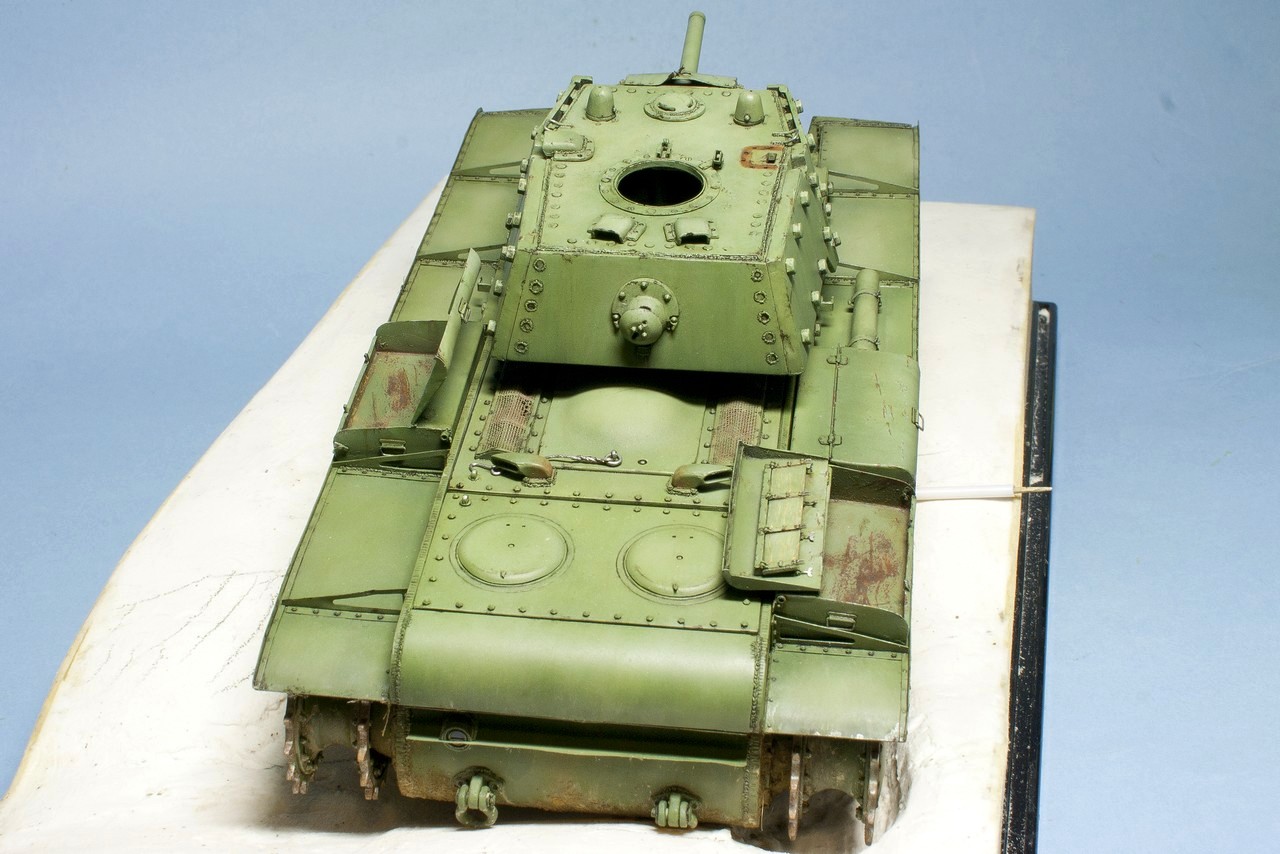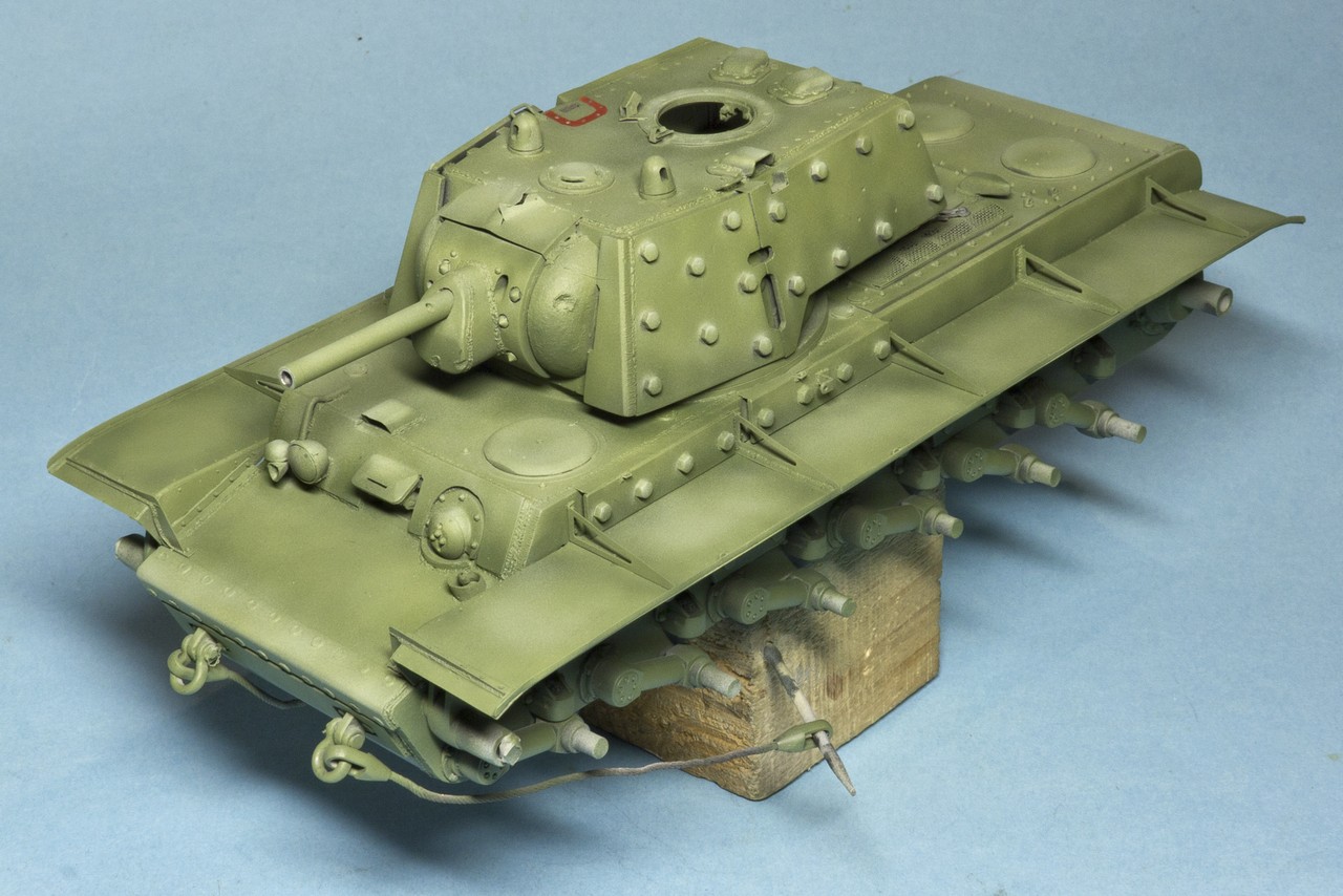 Вопрос по существу: грунтовка на советских танках была красно-коричневая (как на этом КВ под сорванной бронировкой смотрового прибора) или шаровая (серая)?