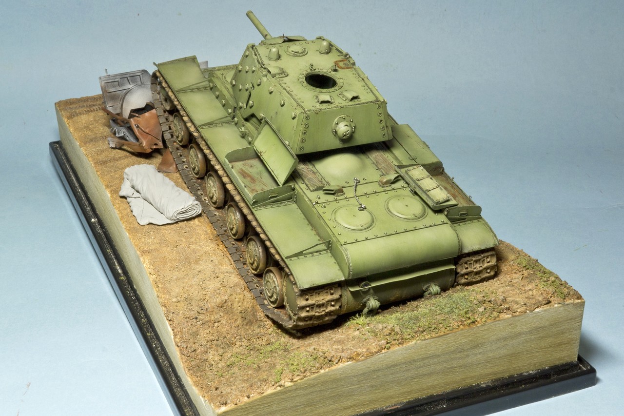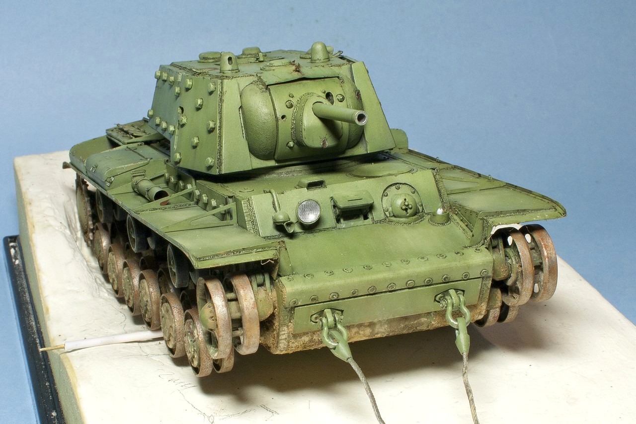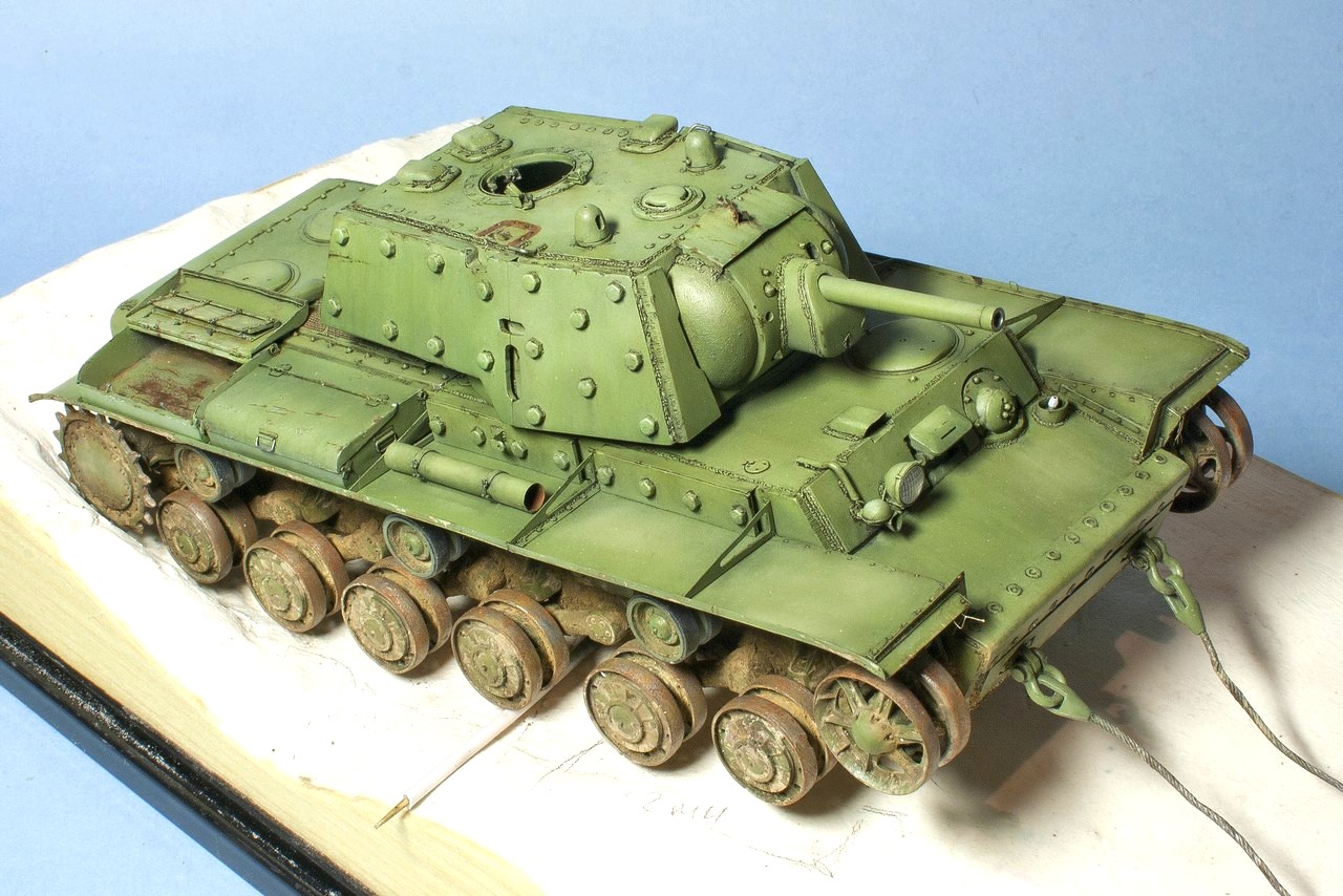 Вопрос по существу: грунтовка на советских танках была красно-коричневая (как на этом КВ под сорванной бронировкой смотрового прибора) или шаровая (серая)?