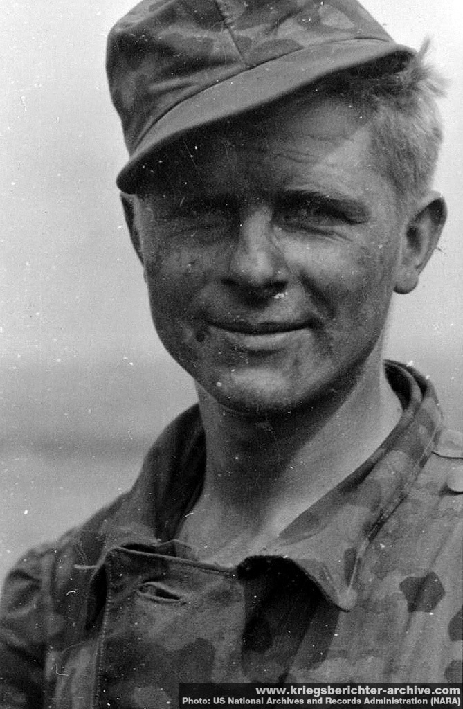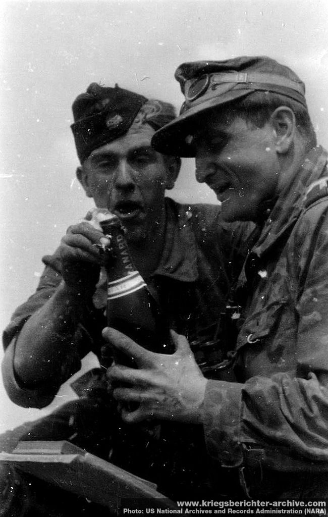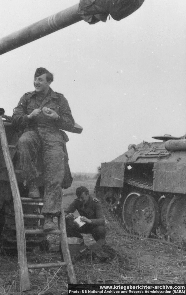 Это танкист СС на Курскую дугу и вообще на лето-осень 1943 г. Использование таких комбинезонов позднее этого периода подтверждается лишь несколькими фотографиями, то есть не характерно.