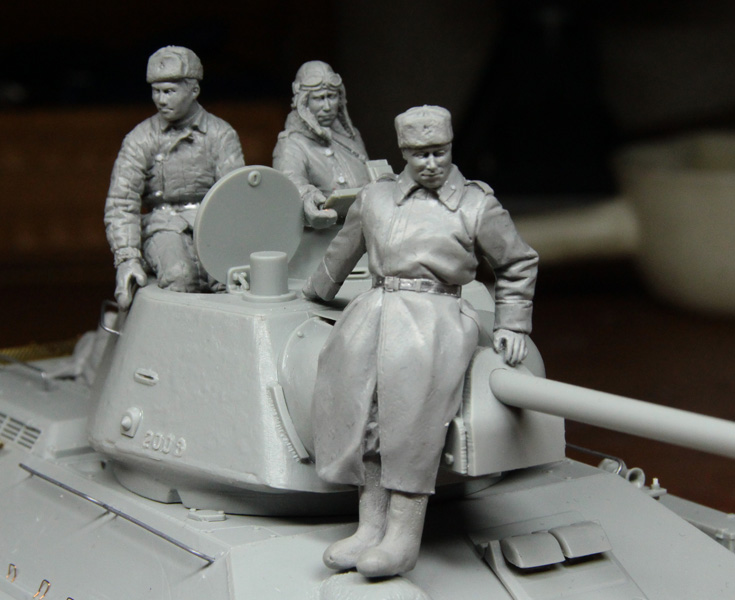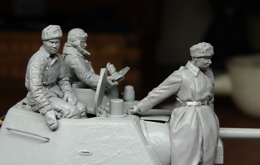 Фигурки решил сделать плотно связанными с танком. Так, с одной стороны, для коммерции плохо, но с другой они живее смотрятся. Маленько надоели универсальные фигурки Альпайн-стайл. Надо ещё полепить "интегрированных" танкистов и наших и немцев.