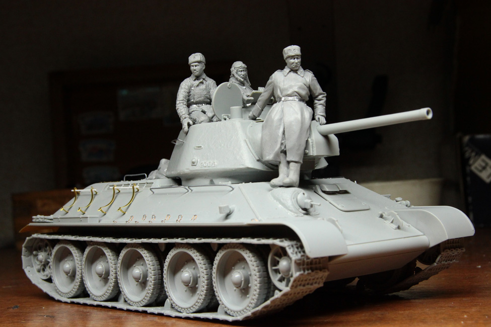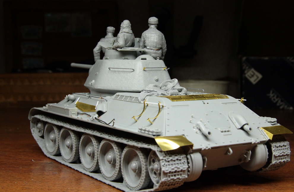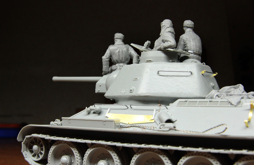 Фигуры слеплены ОЧЕВИДНО для танка В ДВИЖЕНИИ. По крайней мере напряженная поза стоящего на лобовой и держащегося за приваренное кольцо на башне бойца однозначно говорит об этом.