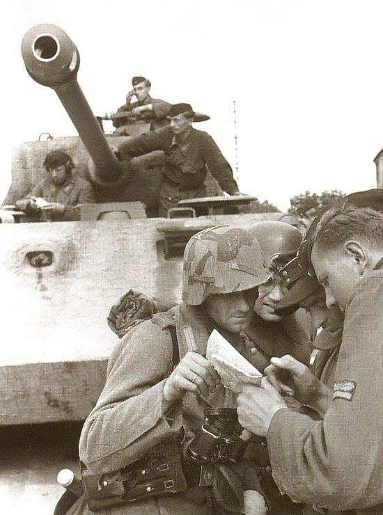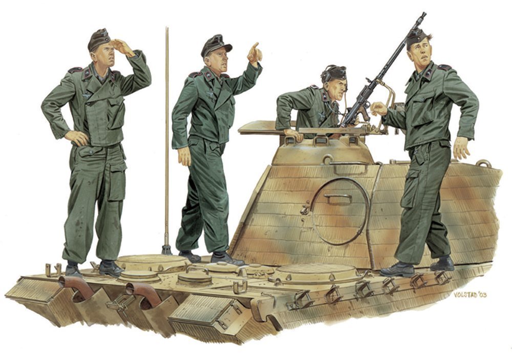 На этот раз летние танкисты Вермахт на Нормандию 1944 г. Там засветился характерный рабочий танкисткий костюм серо-зеленого цвета.