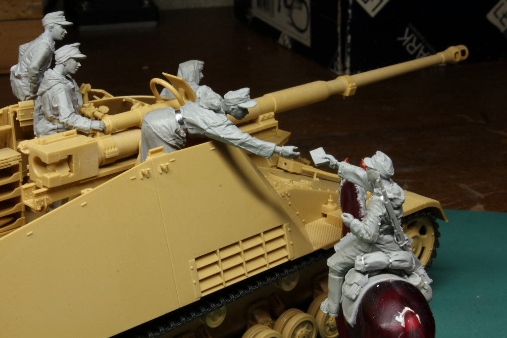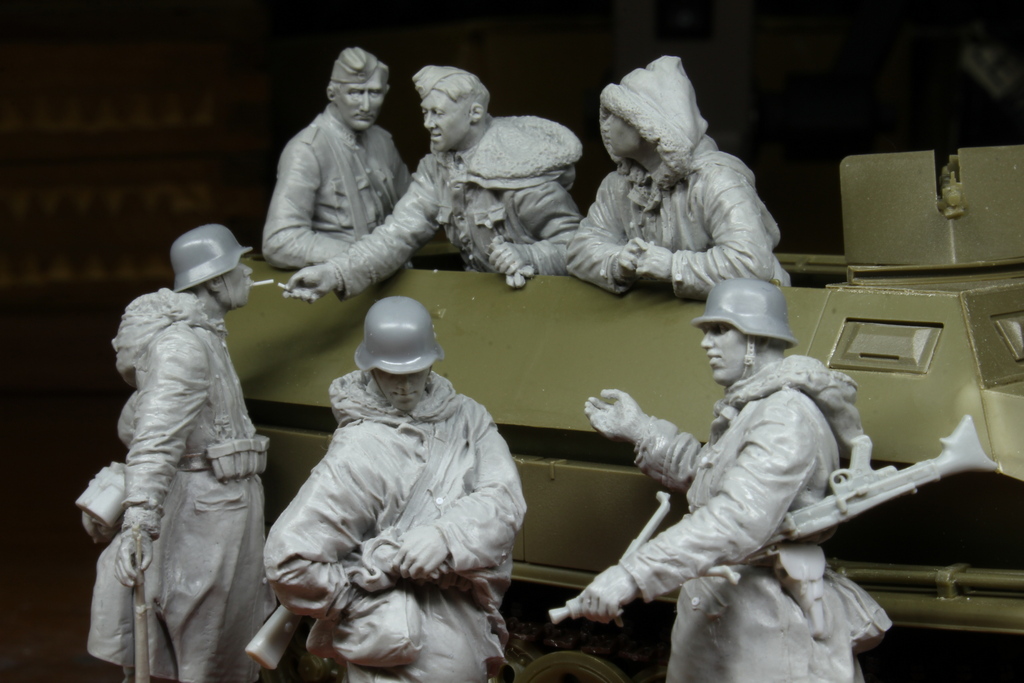 Anton, с этими интерьерными фигурками всё очень не просто. Можно много интересных сюжетов придумать: перезаряжает пулемёт, один танкист передает другому сигарету и т.п. Но тут сложности с интеграцией всего этого с интерьером. Не все будут делать вырезы в танках и нужно слепить фигурку так, чтобы её можно было вставить в готовый интерьер только лишь сняв крышу корпуса или башни или как там она почленена.