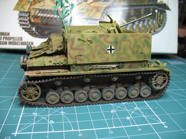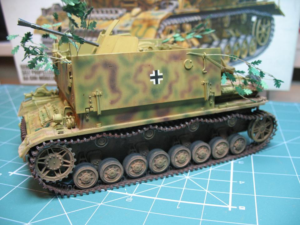 К сожалению фото мало, поэтому только табуретки: Провис гусеницы на левой и правой сторорнах отличается и к сожалению велик... Декаль не блестит - отлично, но почему то не выделен рельеф модели, пресловутые смывки и сухие кисти не использованы, либо мной не увидены... Ну и деревцо выглядит малость пластиковым...