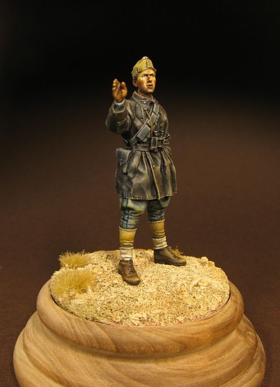 Константин Чиганов,Станислав Кривошеев,спасибо.Может что-то получится к конкурсу.Эту фигурку Алпайн уже окрашивала.Учитывая ошибки с ремнём автомата,перекинула ремень через шею.Он (ремень),перекрыл всё на кителе,значительно усложнив и сборку и покраску.[/b]