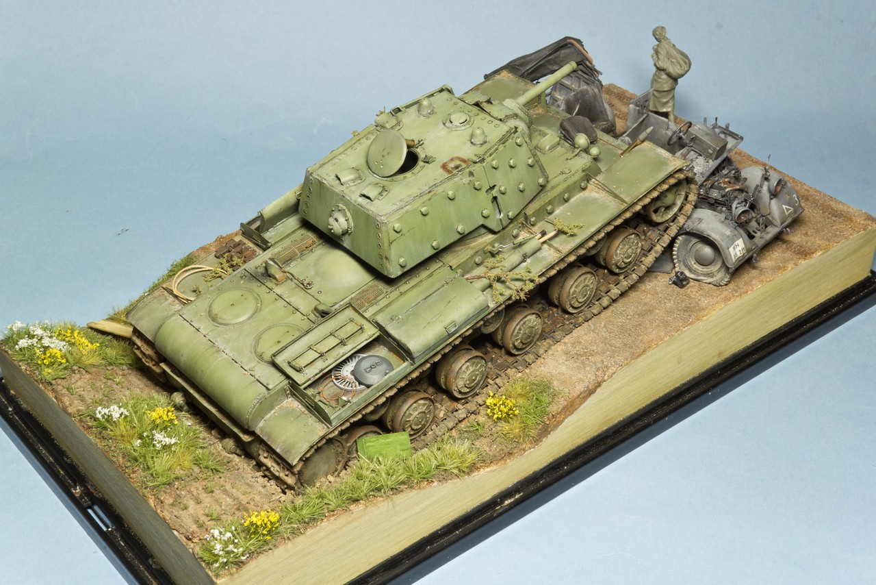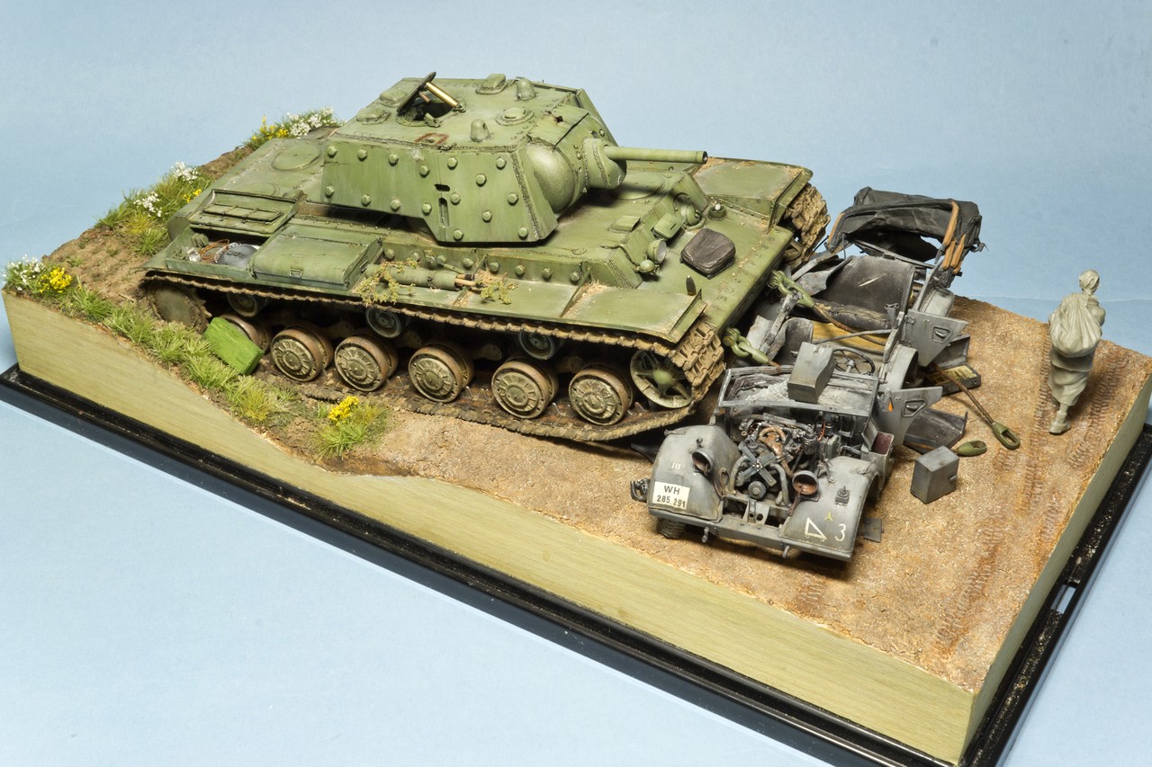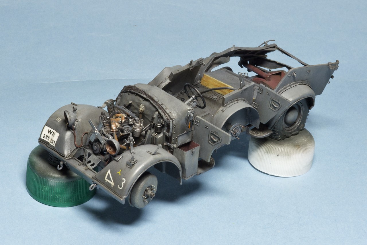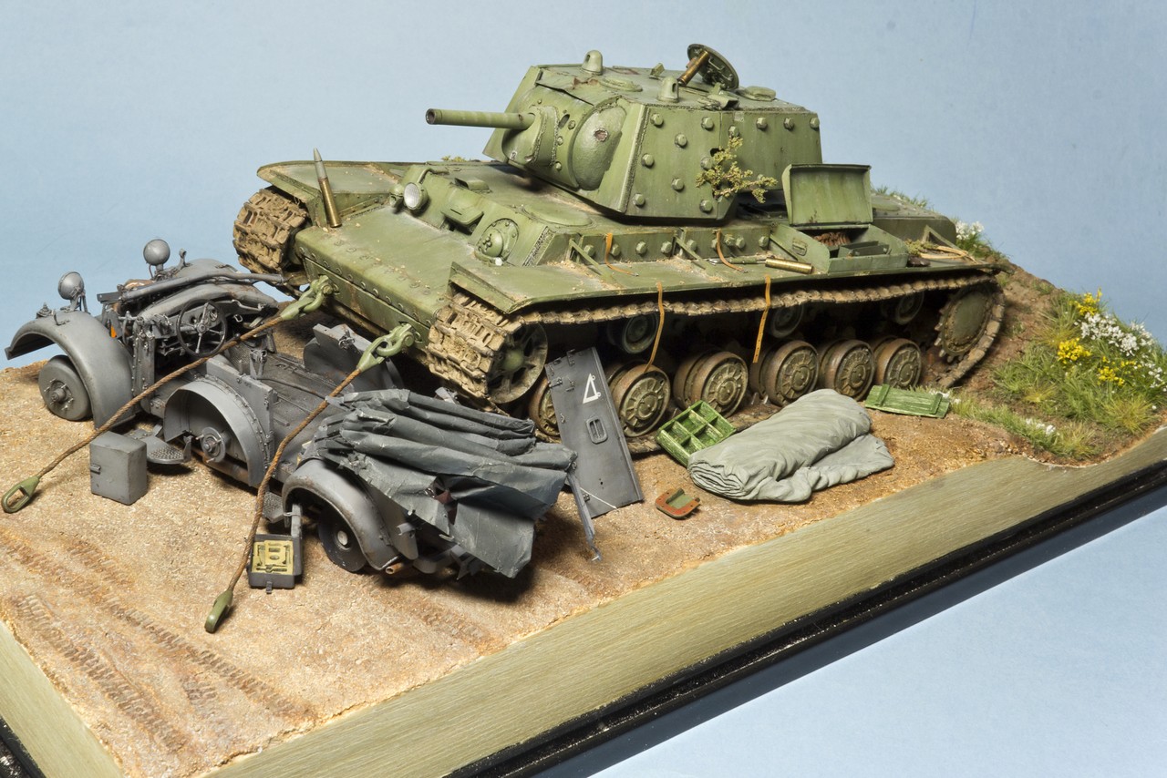Получается супер!!! Один вопрос- два троса прямо на Хорьхе- почему именно такое расположение?! Если танк сам наехал на автомобиль, а потом его (танк) пытались вытащить, то не легче было избавится от Хорьха, отбуксировав в сторону, а потом тащить танк? мысли вслух..