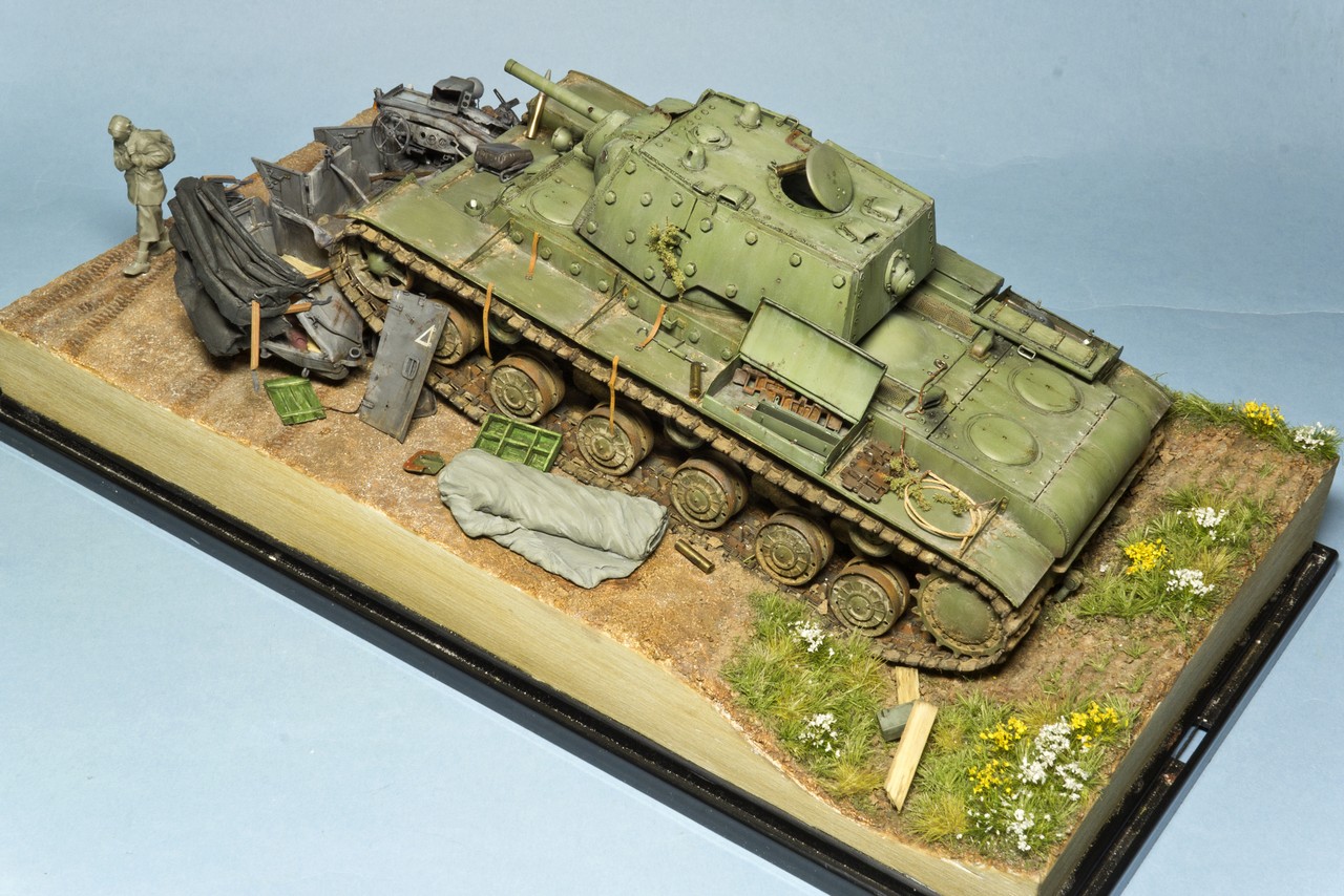Бесспорно!!! Речь о композиции диорамы. Поскольку все (и основание и техника)изначально компоновалось без фигур, то и смотрится цельно композиция без фигур. Если добавить фигуру, то цельность разваливается. Это мое личное мнение. В остальном решать автору.