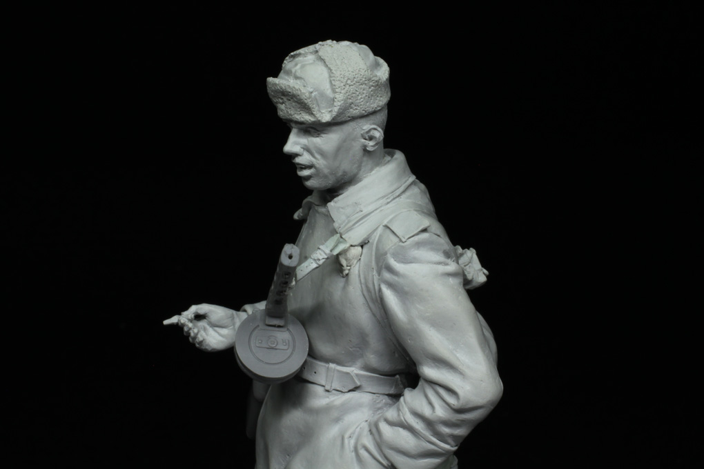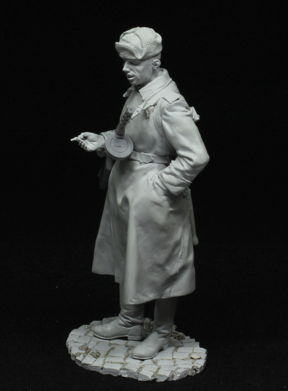 Я тоже думал про опционную голову в пилотке, но что-то я устал уже от него и не совсем фигуркой доволен. Пожалуй, образ нашего солдата в пилотке мы оставим для следующей фигуры (или бюста).
