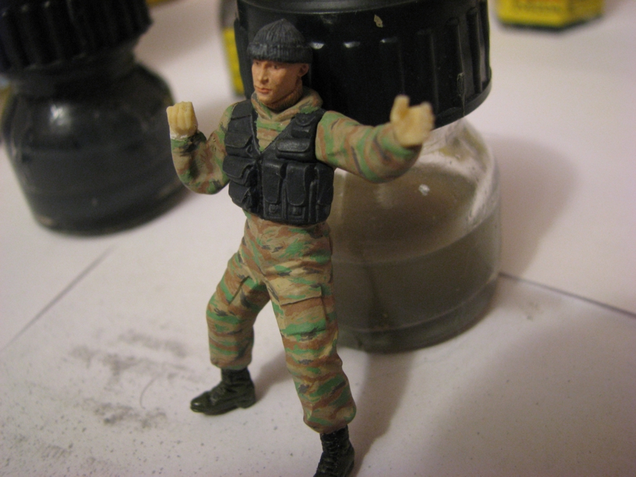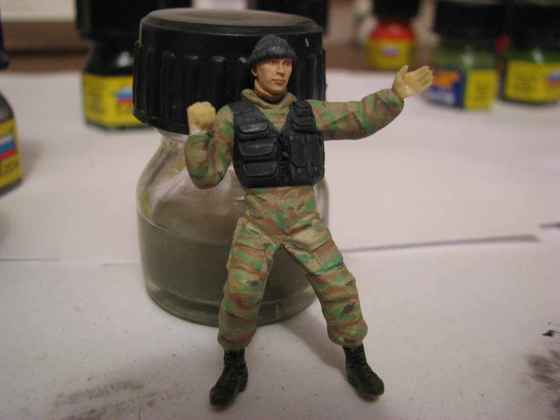 DUFF, а зачем офицерский ремень??? На жилете снизу идут 6 петель под тактический ремень( или с фастекс-пряжкой или с пряжкой Ковача). Из миллипута делаем сначала ремень,а потом сверху имитируем петли креплений.А потом можно подсумки из набора "Спецназ-2" навесить,для ВОГ-25.Сзади или по бокам.