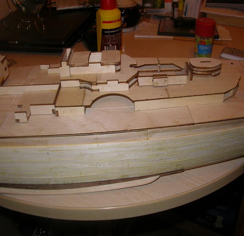 Не примите за старческое брюзжание - но с детства привык, что хоть в 200-м масштабе, хоть в 700-м, корабль легко и просто строится например из банок из-под сгущенки. Никто из домашних на такие траты не возмутится! Вырезаете набор по теор. чертежу, обшивка-пайка, шпаклевка, шлифовка - Через неделю корпус на столе и сгущенки все объелись...