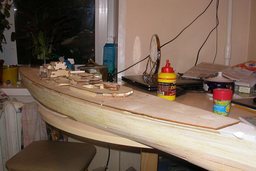 Собираю 58 номер. Корпус собрал осталось шлифонуть да загрунтовать, сейчас надстройки собираю (на счет травла, а что Вы хотели в таком масштабе).