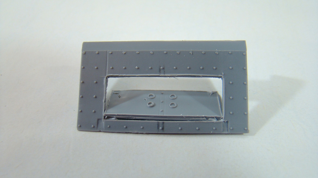 Там на правой створки был небольшой порог,его воспроизвел наложением более тонкого железа и проставил клеп, которые срезал с ходовой макетовской праги.Дальше все заклепки так же идут с этого набора.