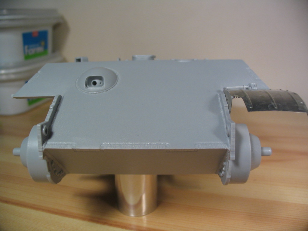 Э нет, рамки крепления инструмента аккуратно сняты, как в 654 батальоне. Причём верхние части там где крепления тросса (штырь и крюк) заботливо оставлены, по всей видимости сначала были отрезаны а затем нижняя часть снята, то же самое и на другой стороне пeрвая рамка снята,а чурбан с креплением оставлен. Контейнер был перенесен на корму, а машина думаю SdKfz 268 (та где 2 антенны, дополнительная только на башне).