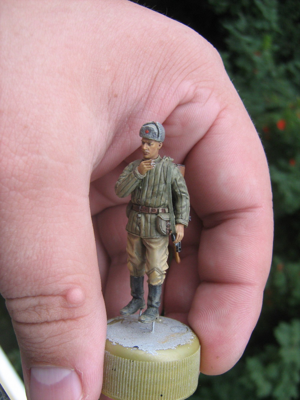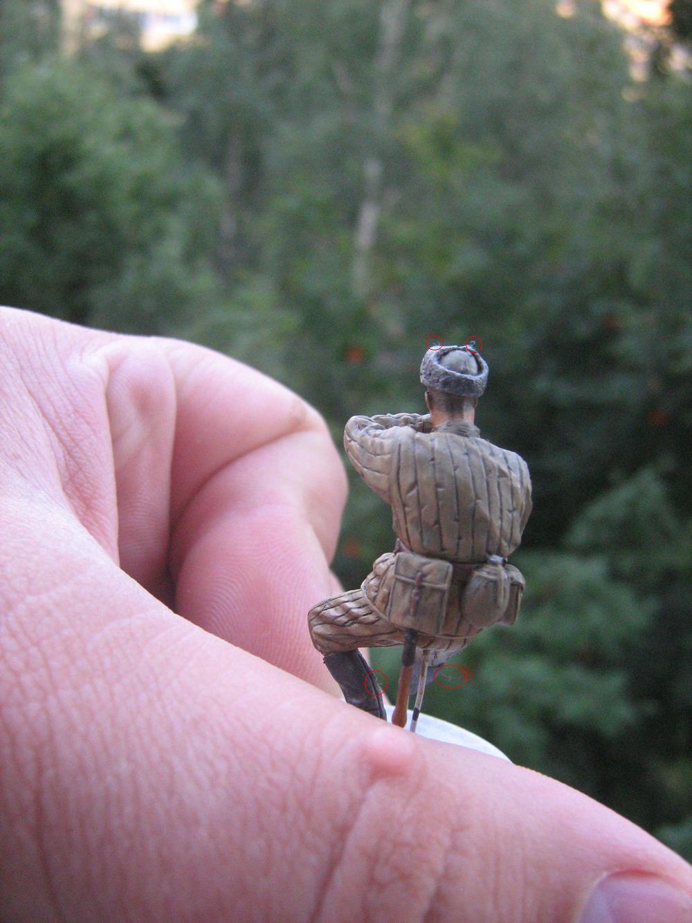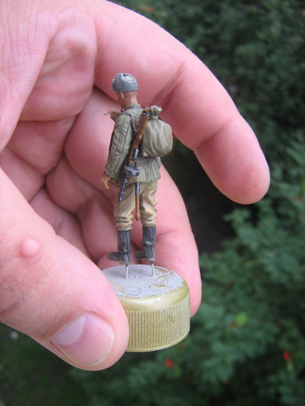 "звезду,только-бы потусклей" С этой проблемой можно справиться загрунтуйте из аера тонких слоем тамиевским акрилом! Подчеркиваю из аэра..Хочу отметить что уровень повышается с каждой новой фигуркой! Здорово! видимо к концу построения диорамы фигуры выйдут на шедевральный уровень!