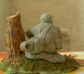 Сегодня тихий день на работе, ни начальства, вообще никого. Полепил Джонни.Сделал ружьё(дома спрячу чтоб собак не достал).Кисти рук переделал,есть неожиданная идея по поводу того, что он будет держать в руке.Может показаться,что патронная сумка висит несколько высоко. Но я дома надевал короткую куртку и сумку жены и пробовал "доставать патроны"("Папа, ты чего?"). Может и не прав, но мне и,соответственно,Джонни так удобнее.