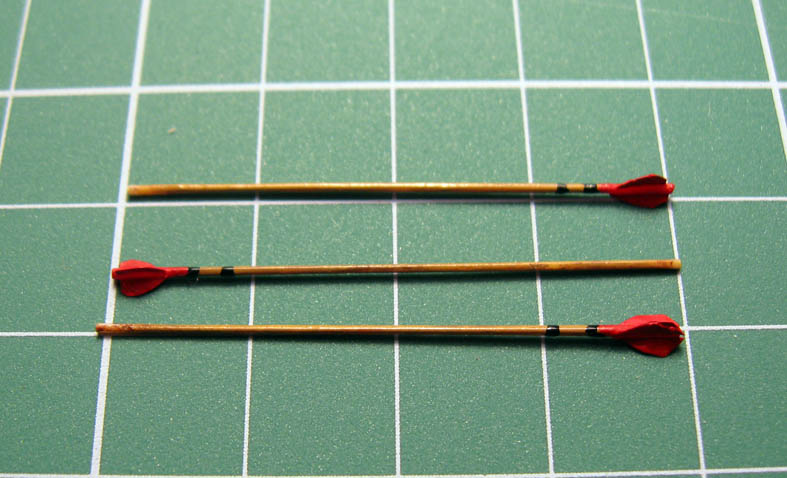 Когда просверливал щит- для того что бы сделать стрелы вынимаемые (они не закреплены в щите), столкнулся с тем что надо сделать какие-то ограничители с другой стороны щита. Решил,что это будут наконечники стрел- которые вышли с другой стороны щита.
