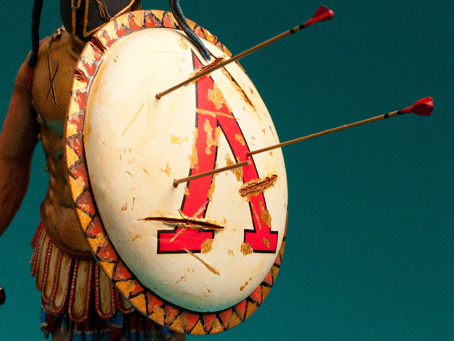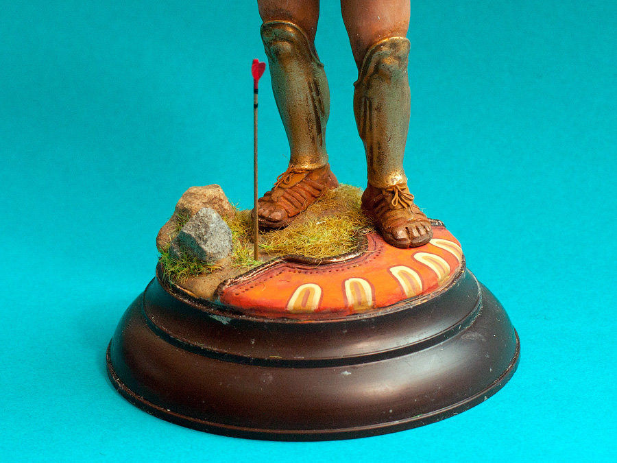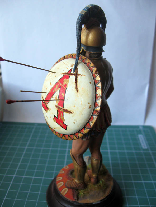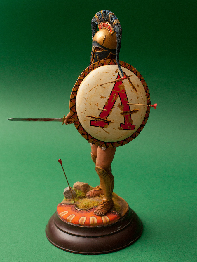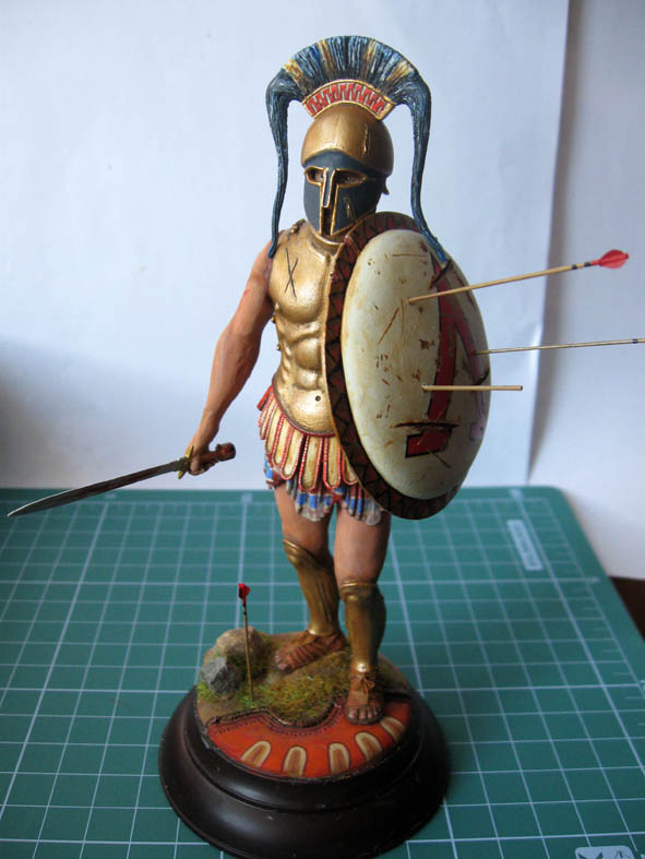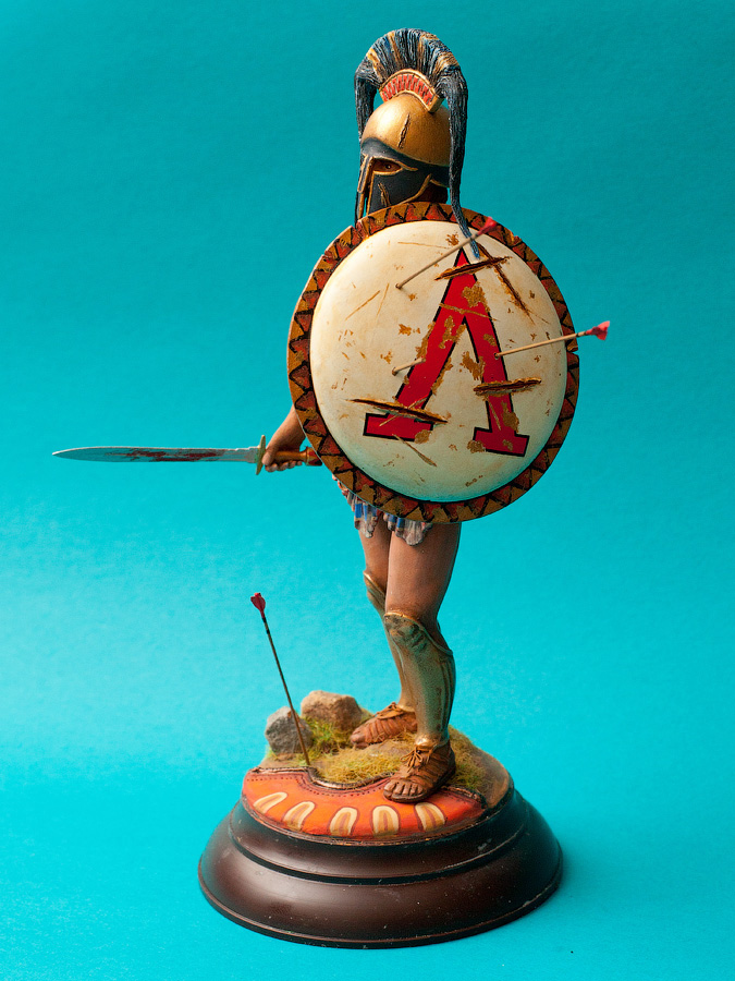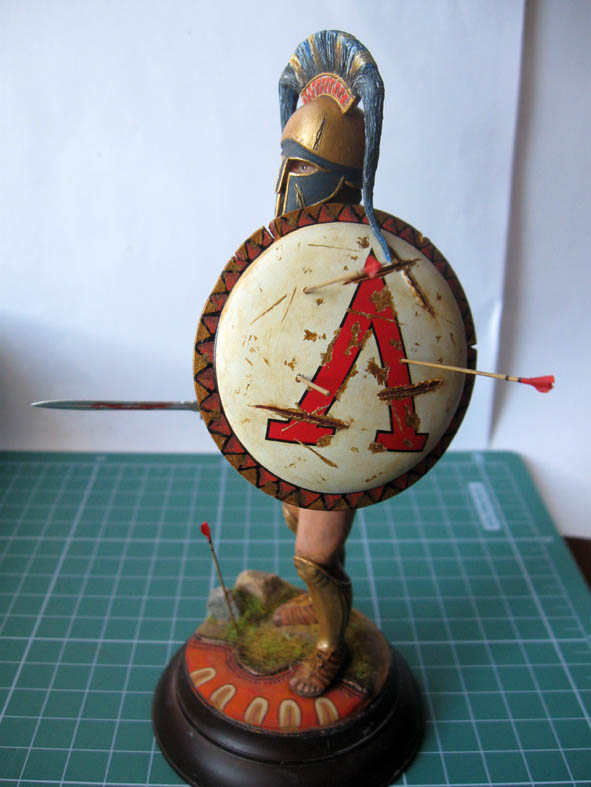 Работа сделана. Леонид водружён на подставку. По наитию- Леонид сделал шаг вперёд именно левой ногой и наступила на вражеский щит. Именно левая нога - выступающая вперёд, по утверждению древних Египтян делает шаг в вечность.