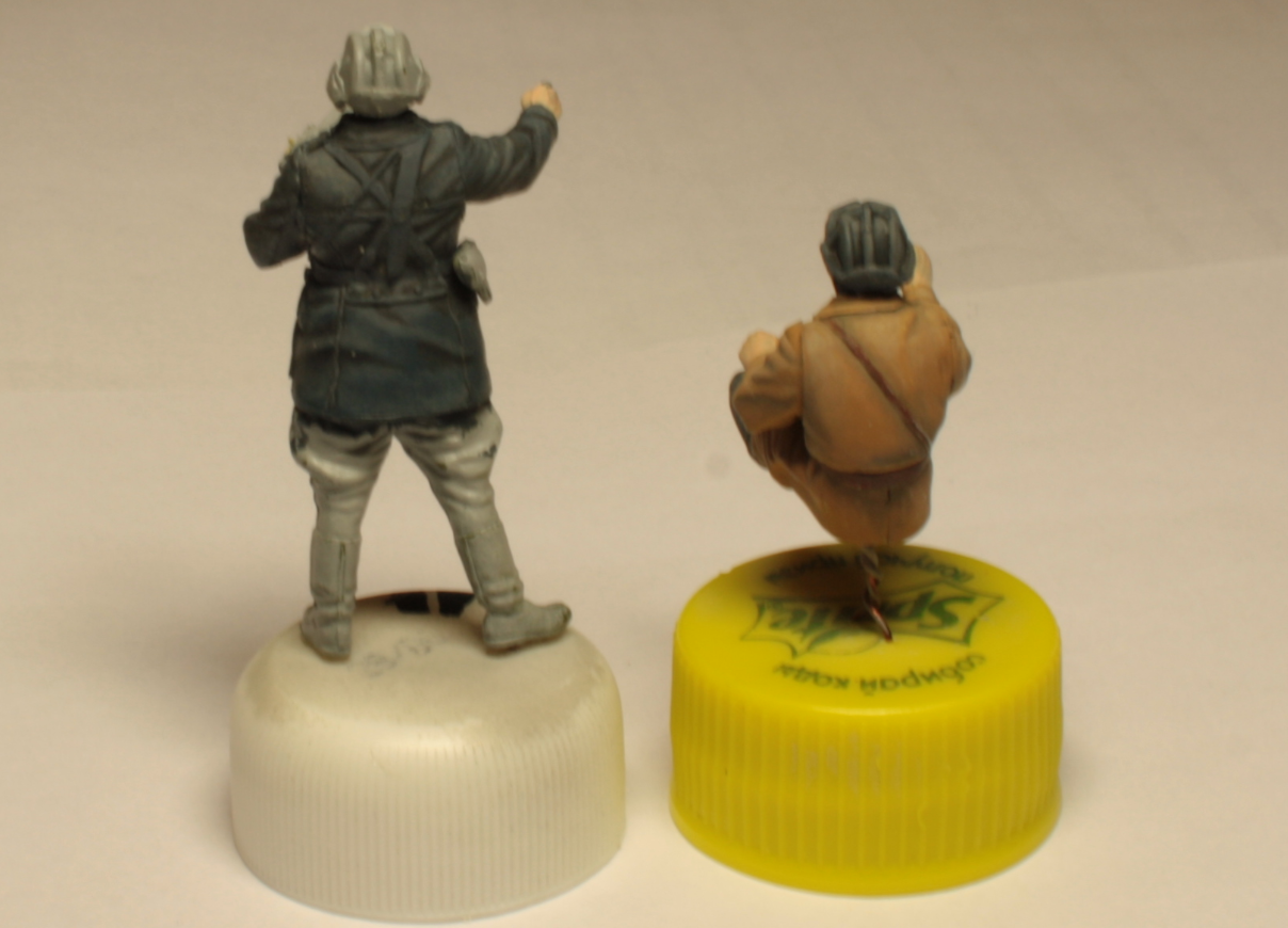 Правого бойца пытался изобразить в выцветшем хаки (так как чистовые фигуры будут пехотинцами) но в цвет явно не попал, хотя делал по рекомендациям Демченко из книги. Буду признателен за совет как правильно намешать цвет для хаки.