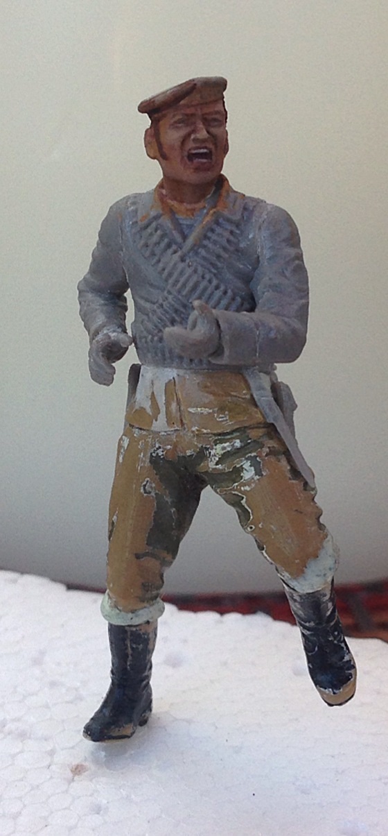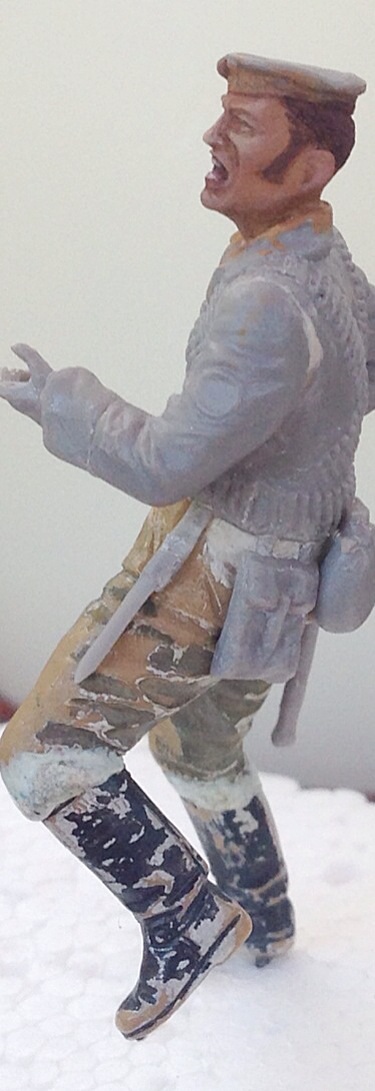 После долгого путешествия, наконец-то любимое хобби!!! Еще один из "моих".. Этот боец будет с СВТ, атаковать немца. Верхняя "часть" от бегущего бойца из набора морских пехотинцев (который в бушлате), а нижняя - уже даже не помню. Там была гимнастерка, подрезал, сделал вырез как будто бушлат..