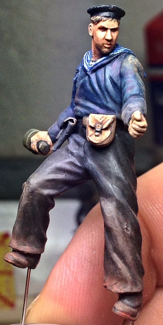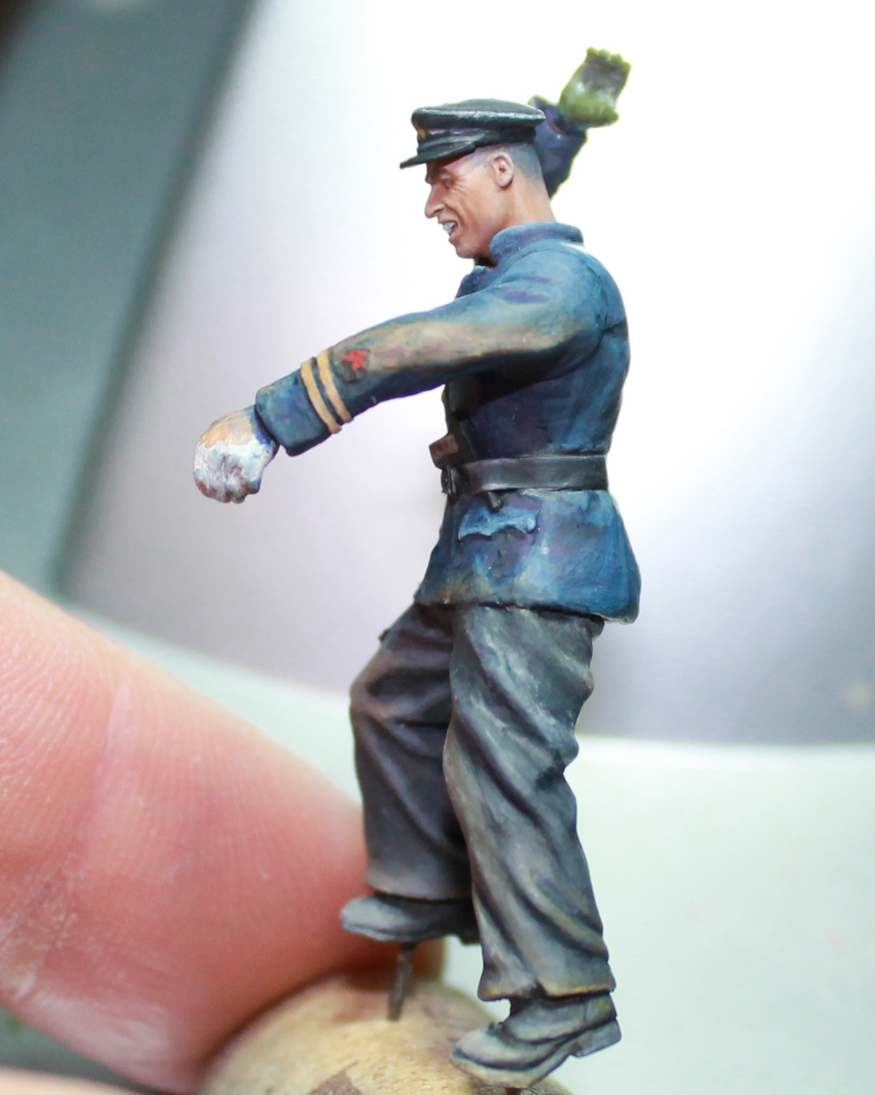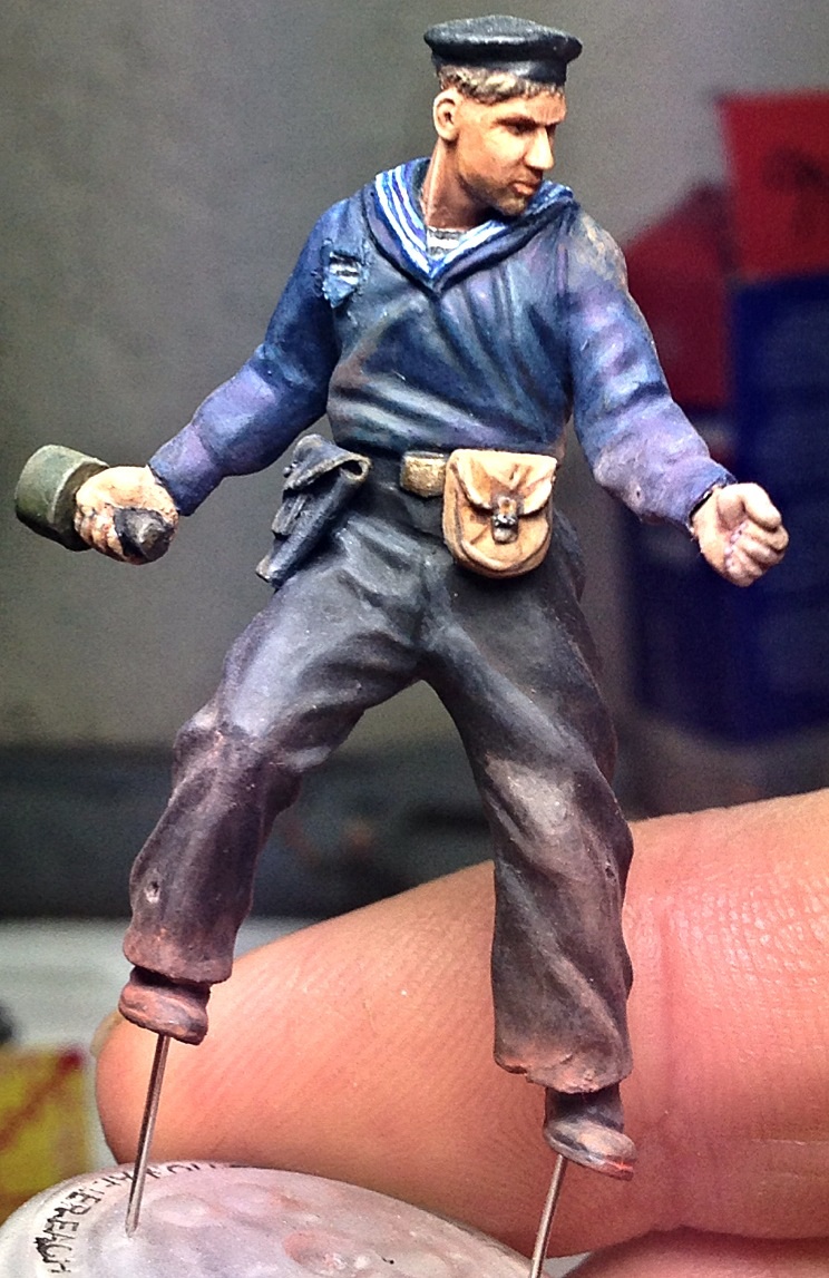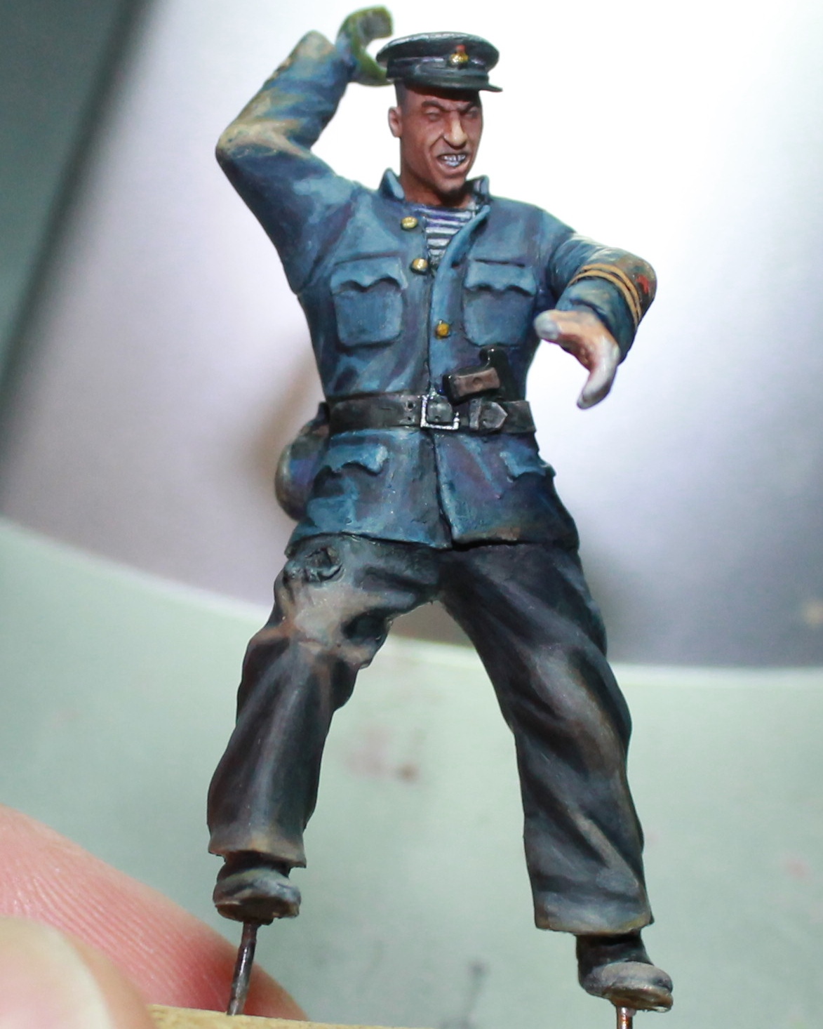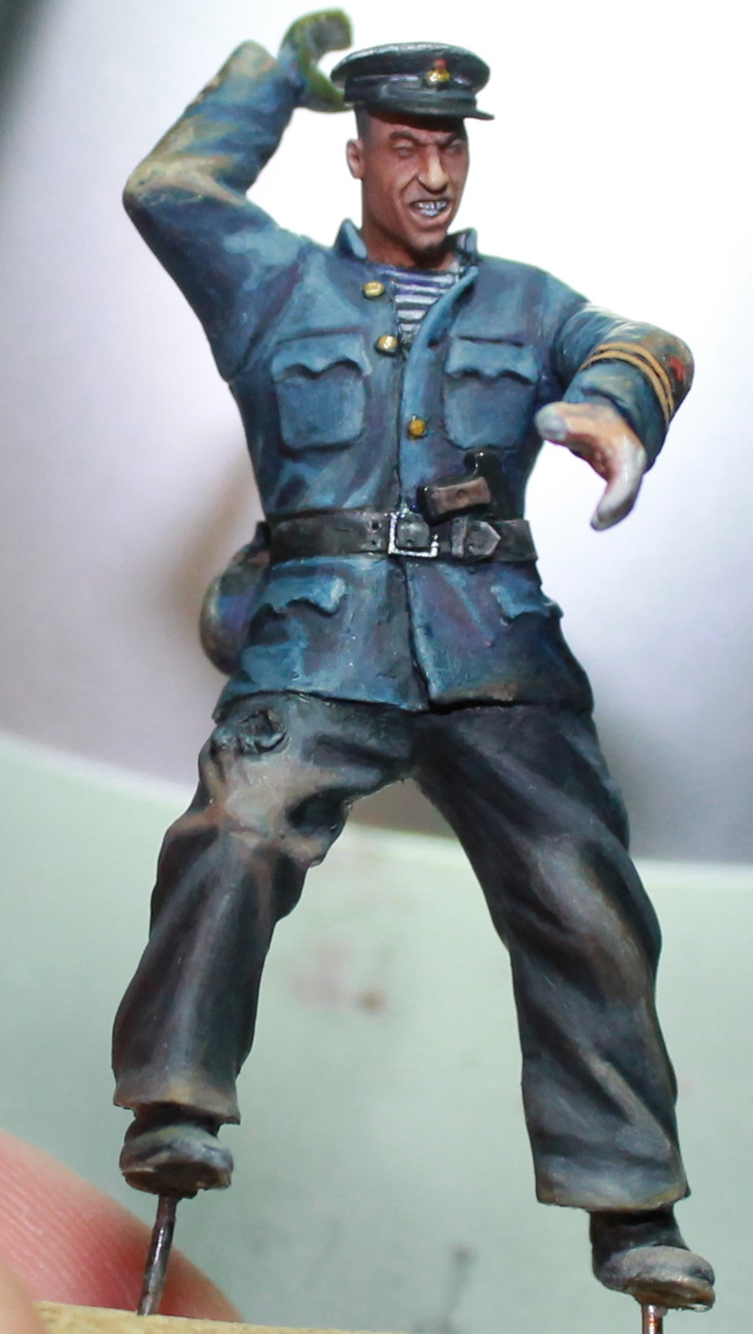 После долгого перерыва, выкладываю почти законченного бойца. Старшина второй статьи. Цвет кителя ушел немного в синий, попробую немного по экспериментировать с фотокамерой, позже..