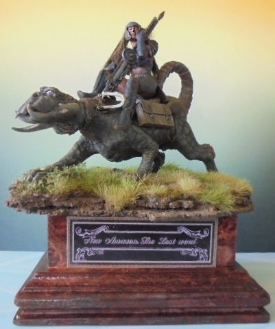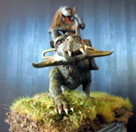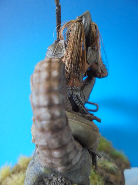Добрый день.Одел амазонку в доспехи,убрал блеск матовым лаком.Сейчас доделываю волосы,вечером выставлю на суд.Зверя задул прозрачной смывкой посветлей из набора АК"Камуфляж".Потом прошелся по рельефу тонкой кисточкой более темной из того же набора.Была безумная идея задуть из аэра камуфляжные линии лаками"Хамелеон" для ногтей разных тонов,но побоялся испортить.Потренируюсь потом на кошечках.Ну и примерил предварительно обвес.ДА,продолжаю бороться с ф.а.,извините.