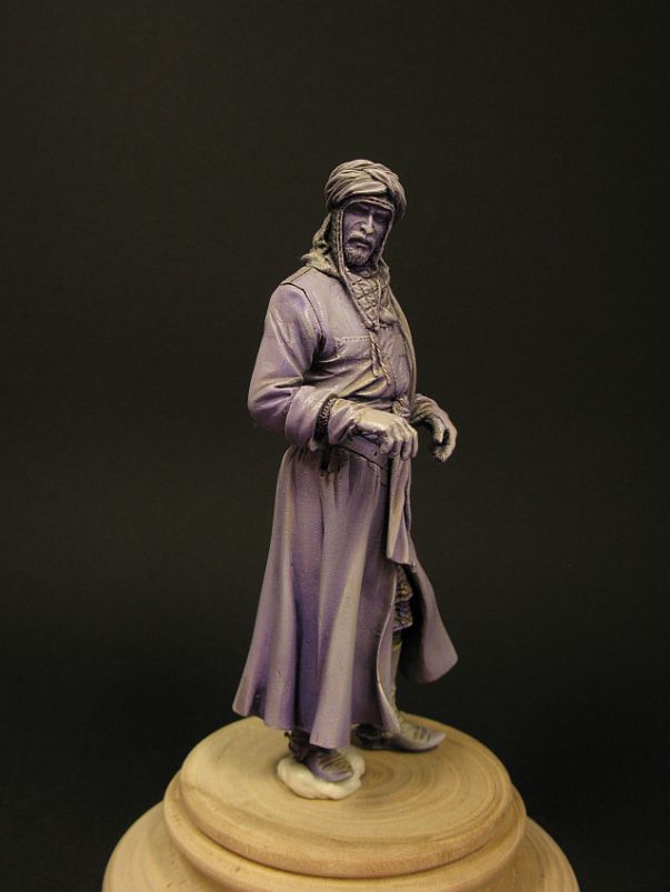Начав с головного убора,потихоньку замечаю,что нижние части истираются.Обёртывание тканью обязательно на больших масштабах.Опять всё обезжиривать,перекрашивать.Вообщем,если не торопиться,поискав нужную плотность краски,эти предварительные тени могут помочь.
