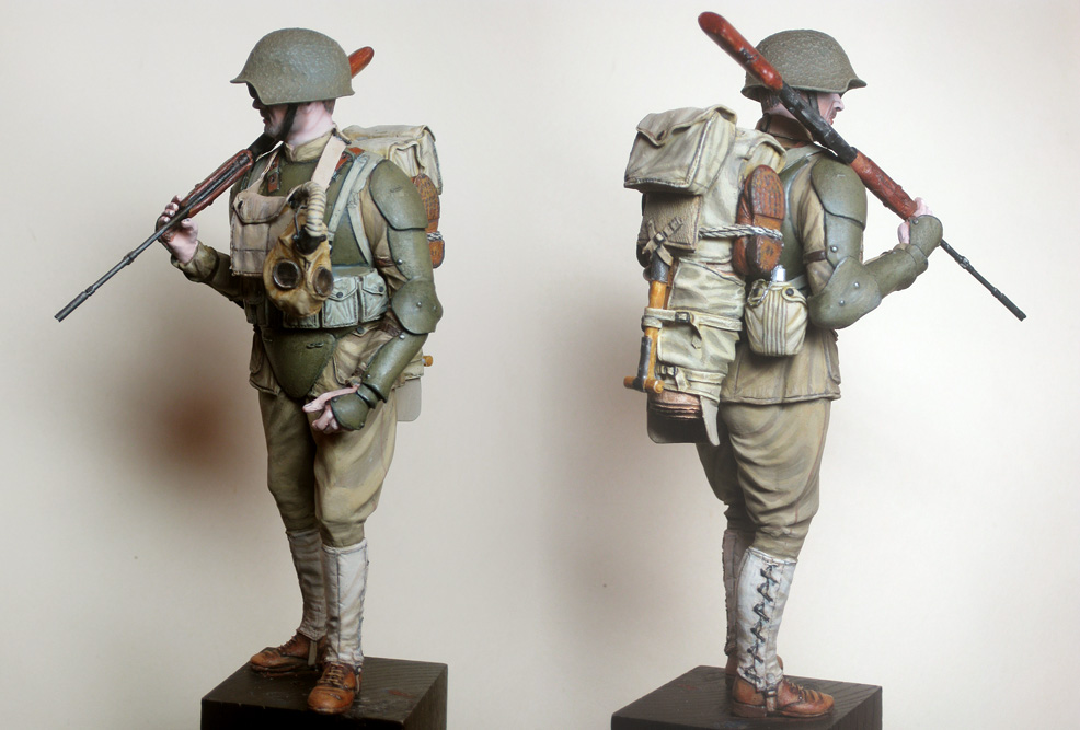 Итак, фигурка американского пехотинца на 1918 год, в экспериментальной легкой броне с защитой рук, в эксперементальном шлеме №5 , вооруженного автоматической винтовкой Браунинга.