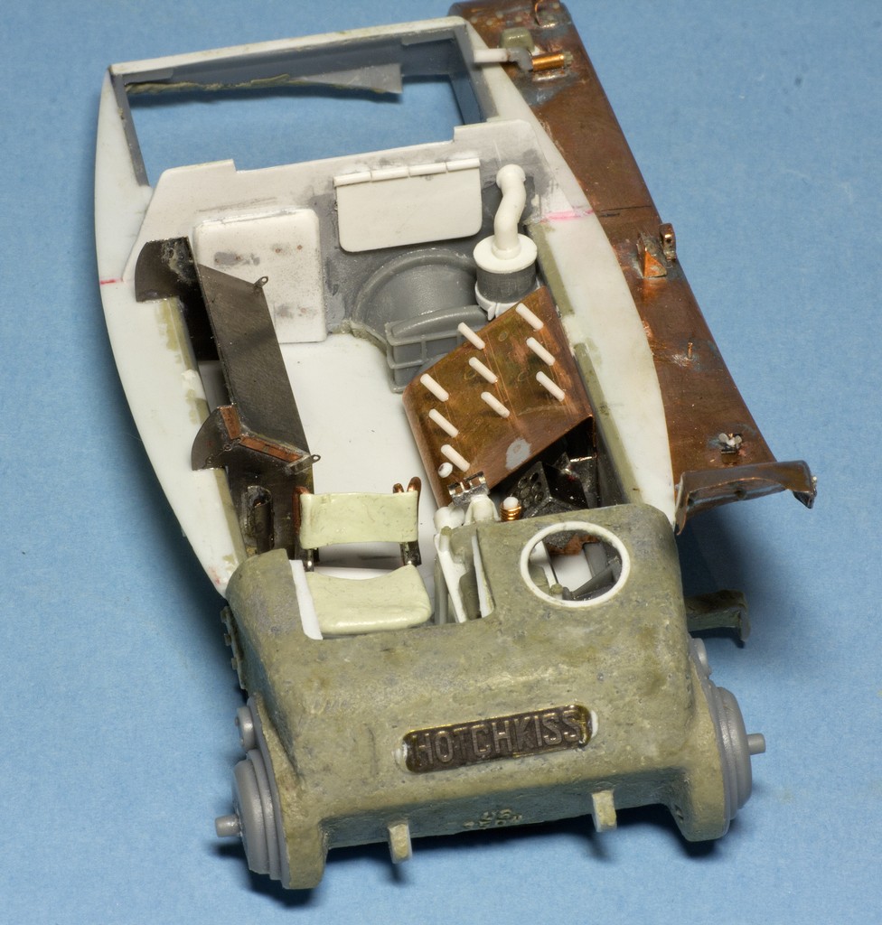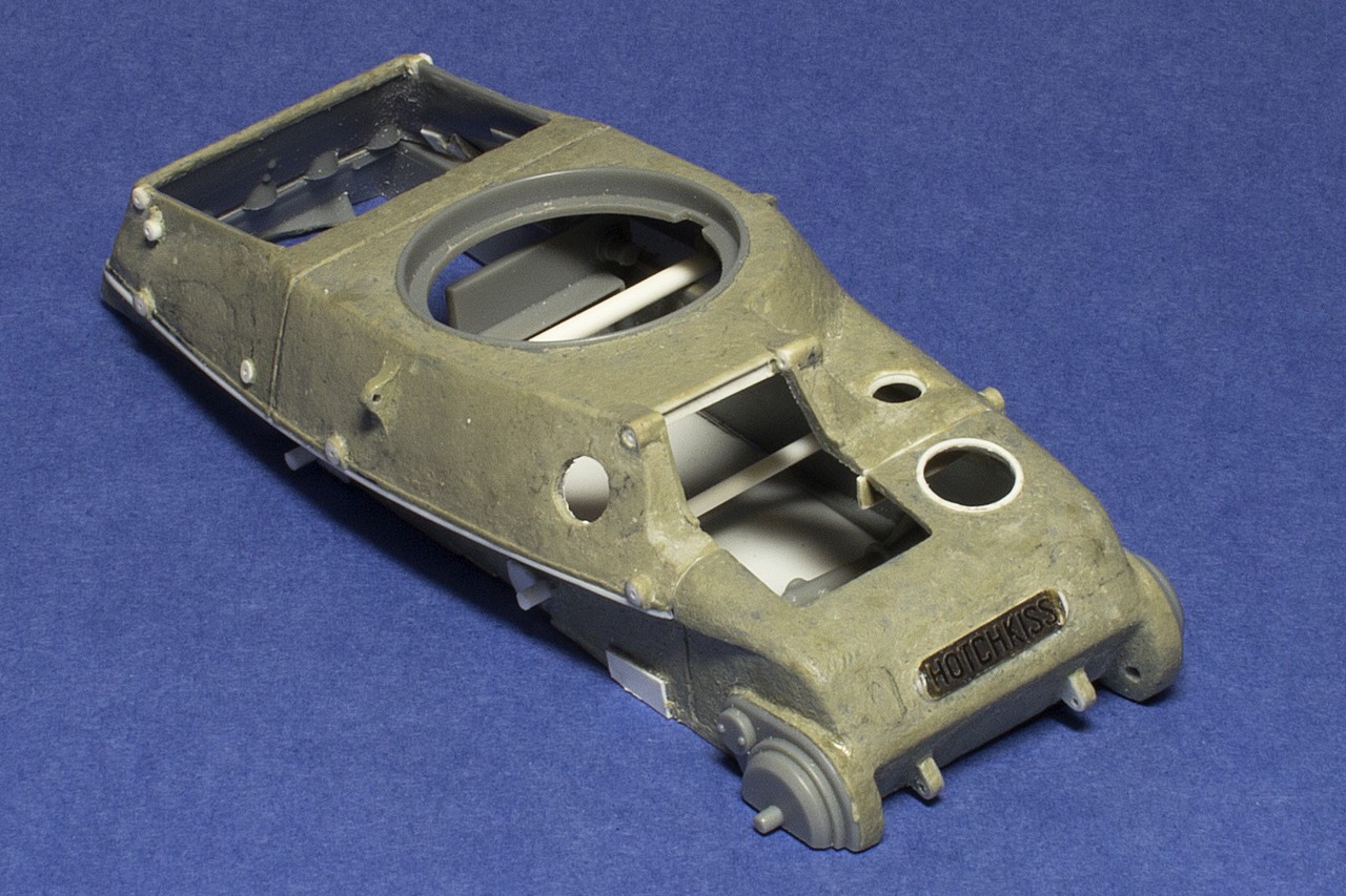 Продвинулся по Гочкису. К сожалению и Бронко и Эдуард (в части фототравления) воспроизводили в своих наборах некий Гочкис из параллельной вселенной. Но если из пластика Броко что-то можно пытаться выжать, то фототравление практически полностью идет в утиль при попытке сделать не то что копийно, но хотя бы похоже.