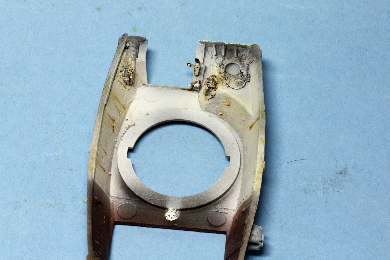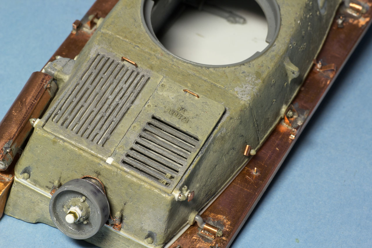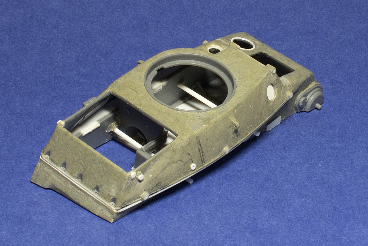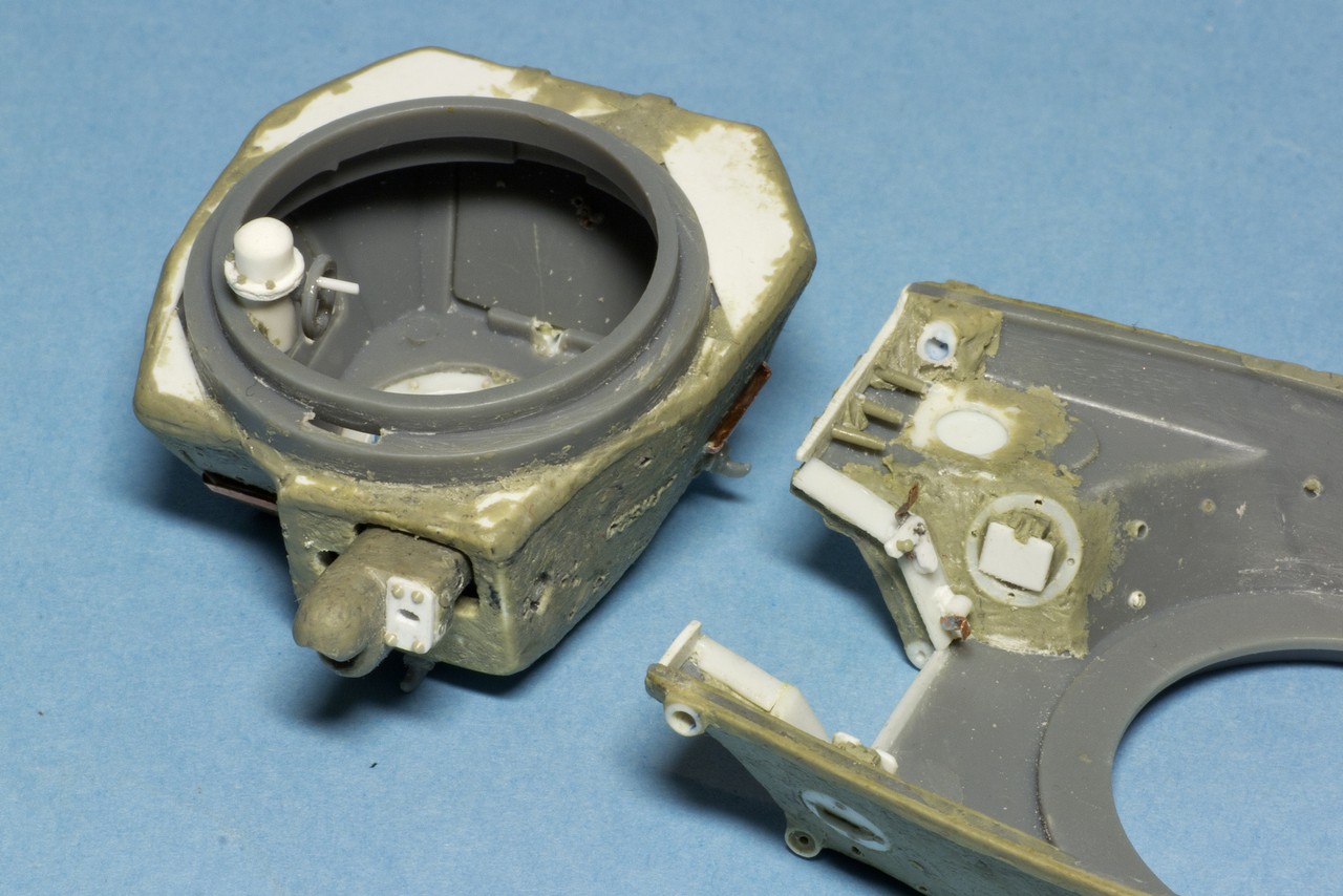 Потом я решил понять масштаб бедствия с переделкой башни и понял, что у меня косяк в месте, где должна быть верхняя створка люка мехвода. Тут поправлю и погружусь в башню и интерьер. Радует, что в башне, несмотря на отсутствие люка, почти ничего видно не будет. А я еще и досочку положу, чтобы тепло сидеть было