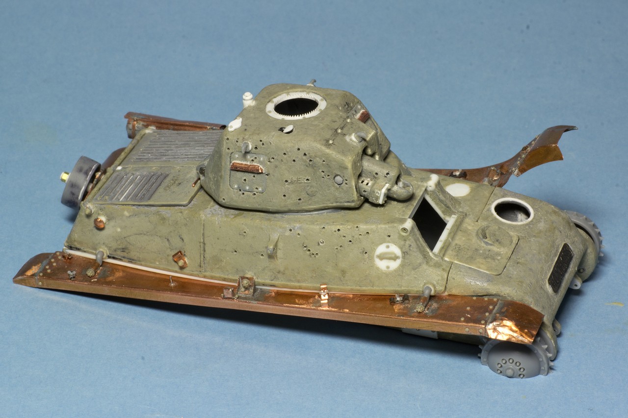 Надежды сделать точную модель из набора Бронко не очень много, но пытаюсь сделать похоже, хотя бы внешне. На сегодня справил явно видимые ошибки Бронко в расшивке частей корпуса, неверном расположении элементов и т.д. Подробно об этом пишу на панцере http://panzer35.ru/forum/58-14211-1#421637