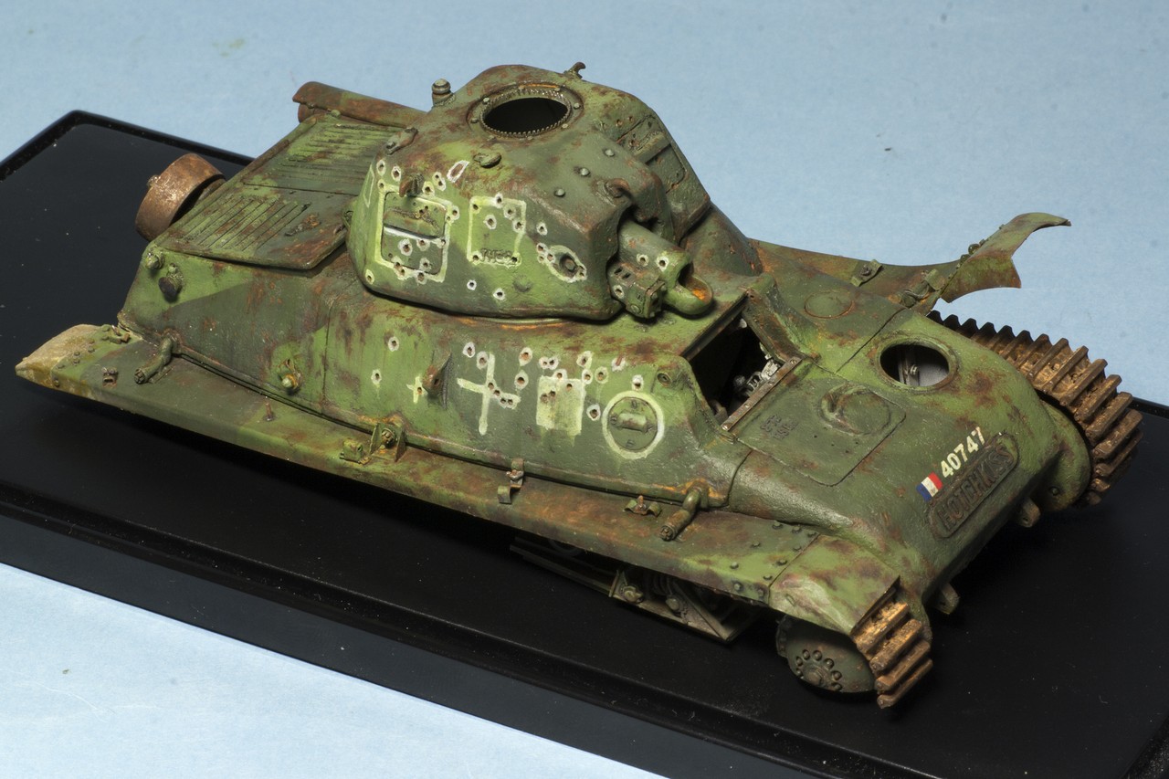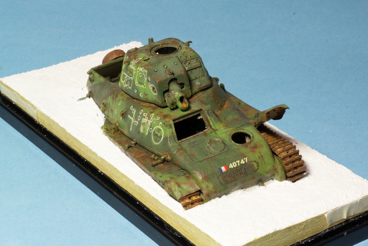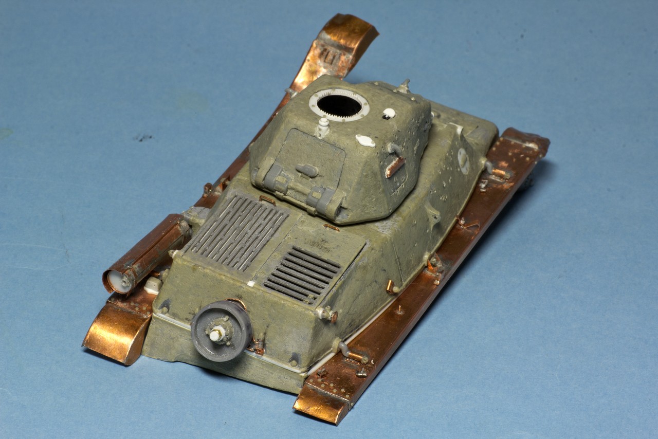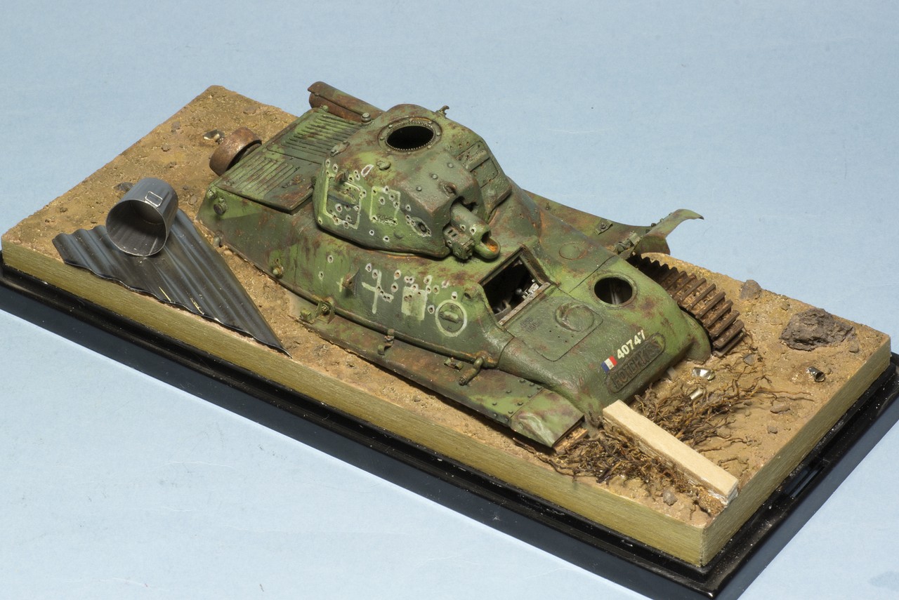 Собрал танчик из разрозненных частей. Окраска еще не закончена, я остановился после фильтров, масляных точек и прорисовки ржавчины маслом. По ржавчине у меня ощущение, что переборщил, но впереди еще грязи и пыль, может будет не так заметно. Но сначала нужно сделать мир вокруг модельки - т.е. подставку. Танк будет "утоплен" в подставке миллиметра на 3-4.