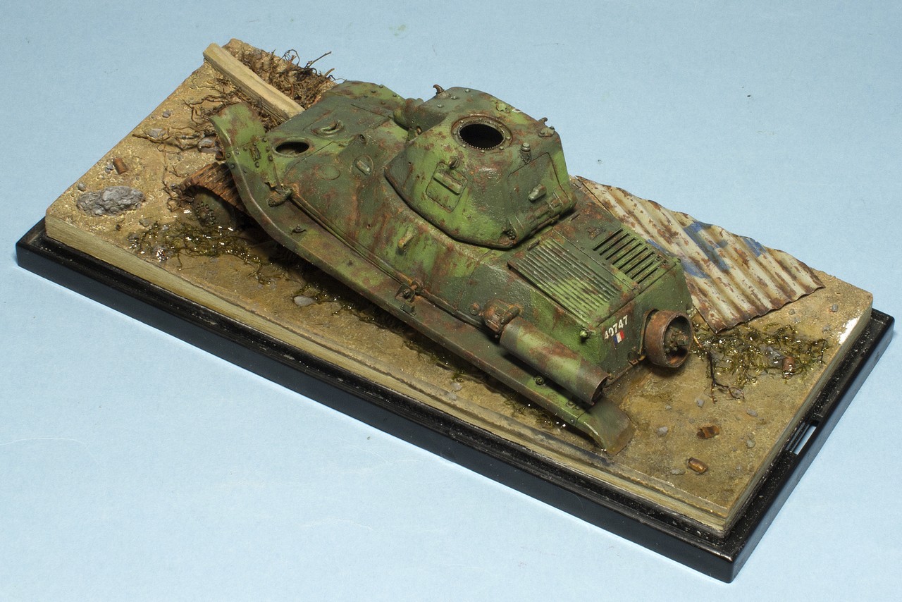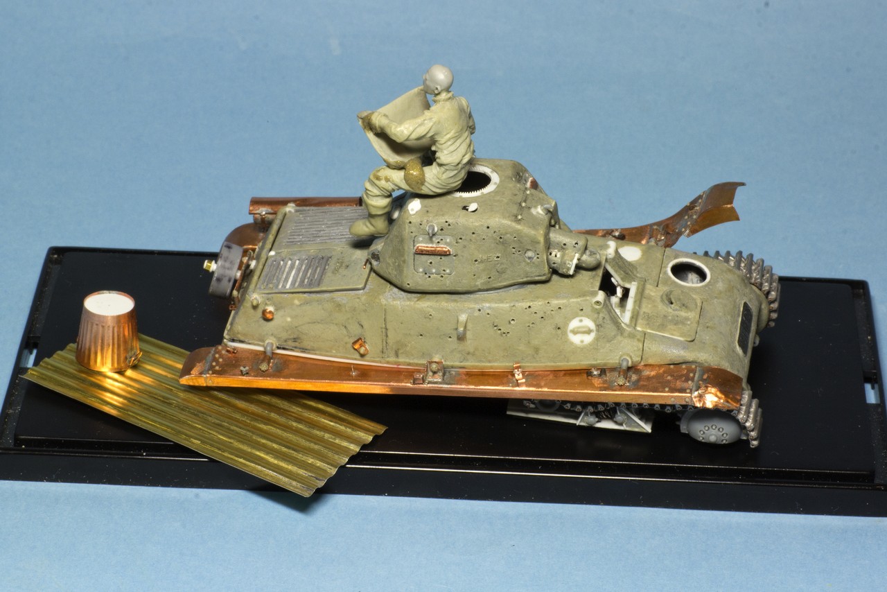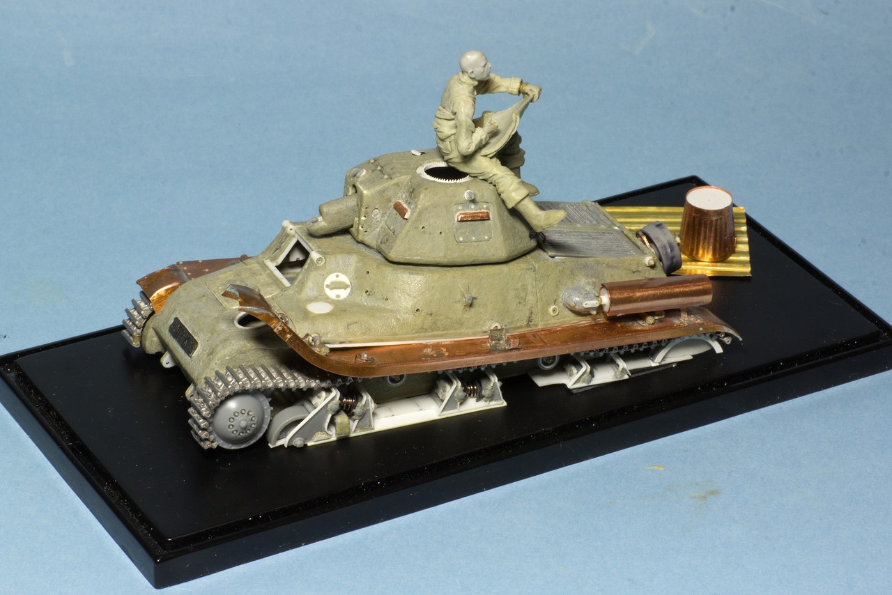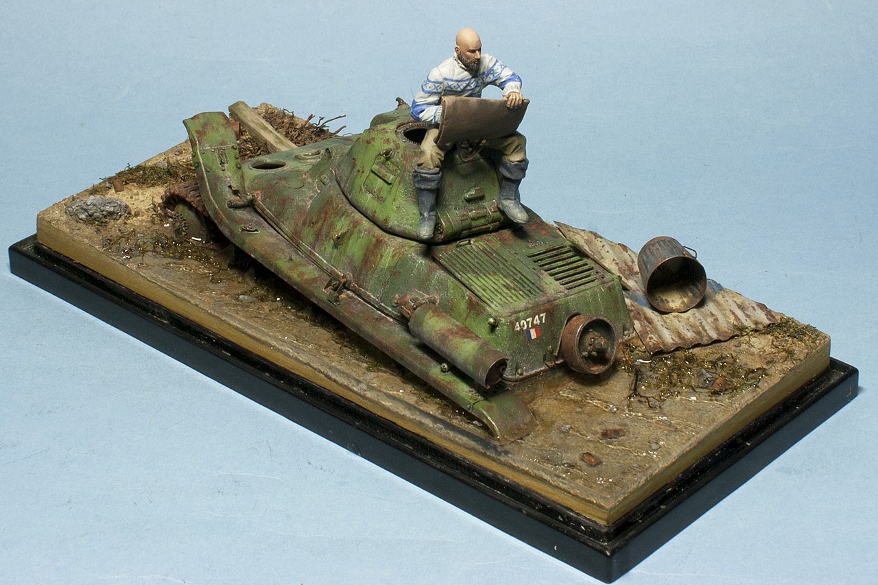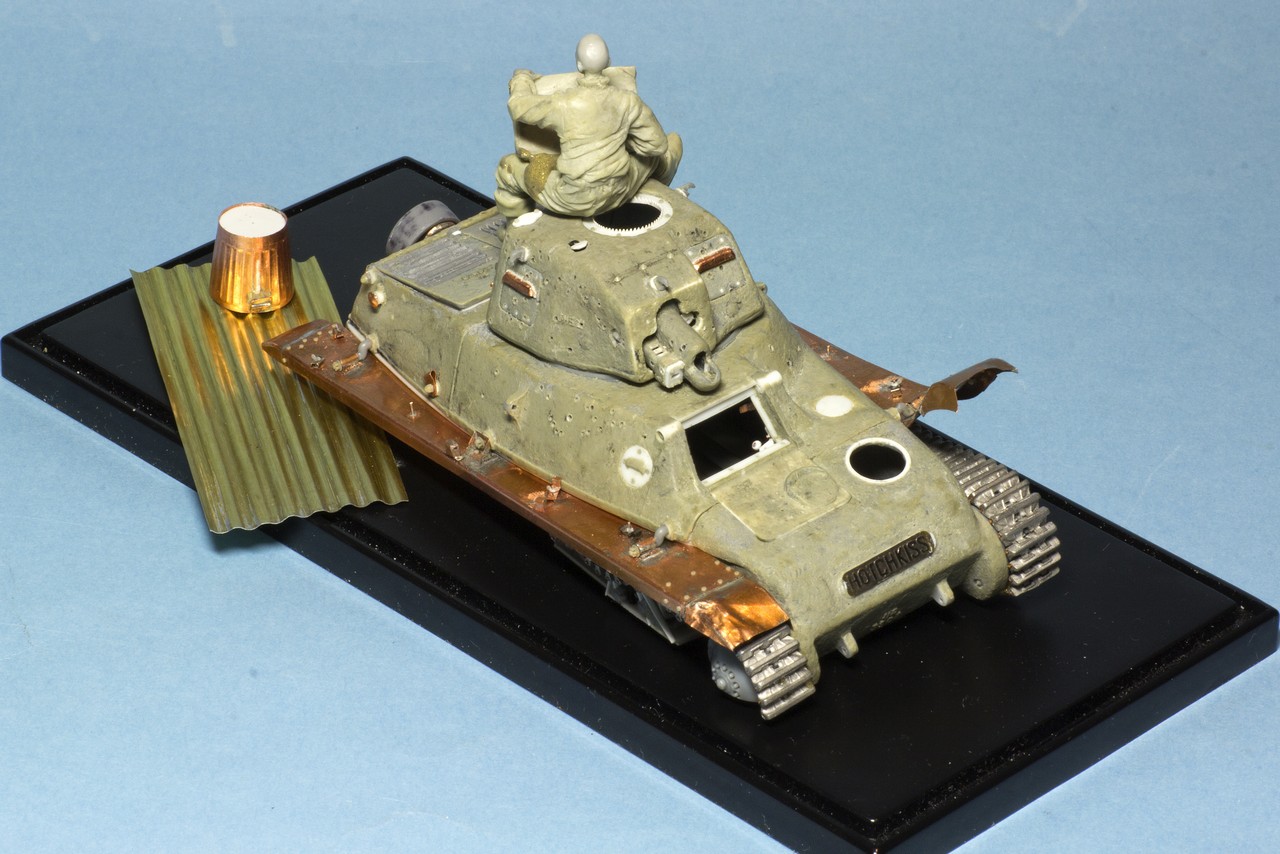 При "утоплении" танка на 3-4 мм очень бы хотелось увидеть прозрачную водичку и может быть стоит "поднять" всю композицию за счет бортиков над поверхностью подставки...типа, чтоб читалась глубина воды за танком. Но, это так - мысли вслух. Еще раз повторюсь: проект нравится, слежу с интересом!