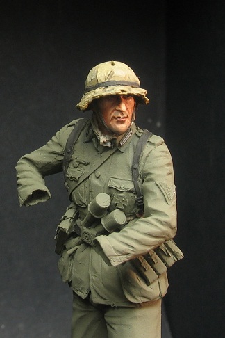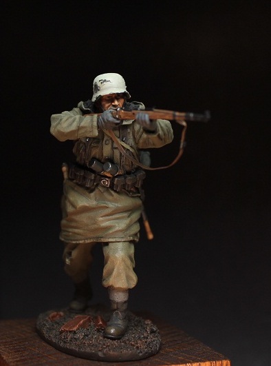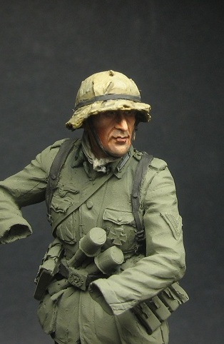 Михаил_Малинин, Михаил,все смотрю на фрица и понимаю,поза нравится,а вот морда лица -нет.Особенно нижняя часть.Подбородок слишком масивный ,на мой взгляд,даже скорее гипертофированный.Росписью будет крайне тяжело отыграть.