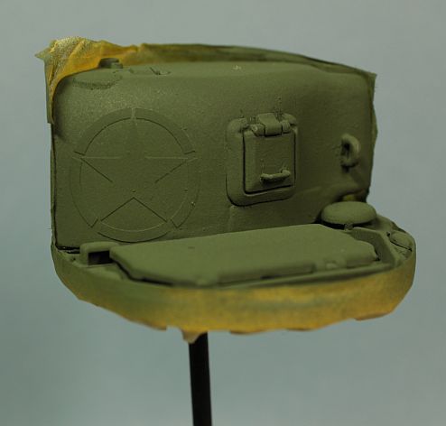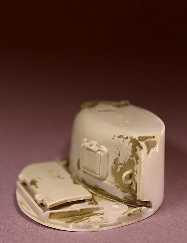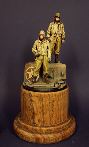 Александр Зеленков ,задача уместить двоих.Эта подставка не пойдёт.Поступило другое предложение.На танке давно был "поставлен крест",т.к. он побывал в руках,давно выросших детей.От него заказчик ампутировал небольшую часть и предложил мне нанести на него белую звезду в круге на зелёном фоне.По-моему не сложно.Думаю снизу подклеить ещё слой пластика.