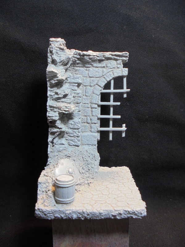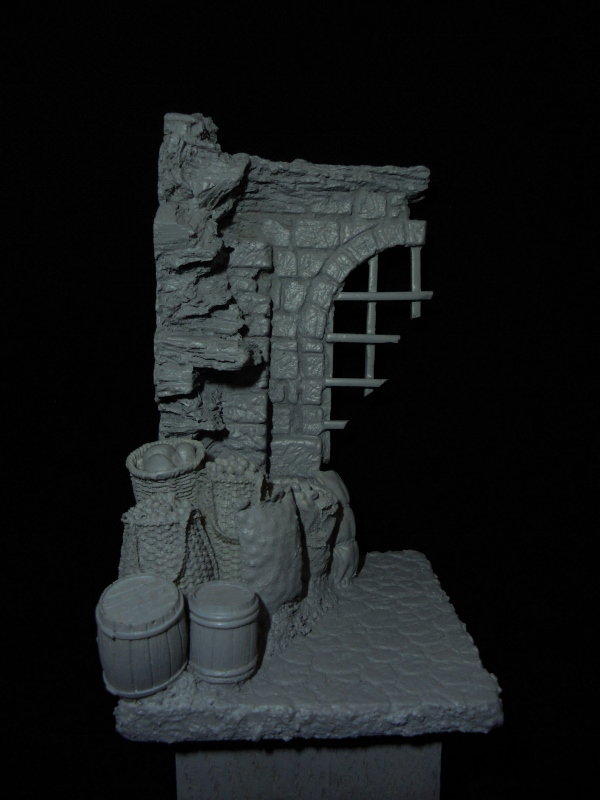Запилил основание под "закрома родины".Загрунтовал перед прейдшейдингом.Смола понравилась,практически не возился с ней.Думаю,виньетка получится фактурная.Вот с масштабностью"сталинградских"фигурок засада.Слишком они мелковаты для хроносовского "ополченца".Хотел детишек на мешки посадить-смотрятся как маленькие гномики.Ну и "ополченец" в базовых цветах:
