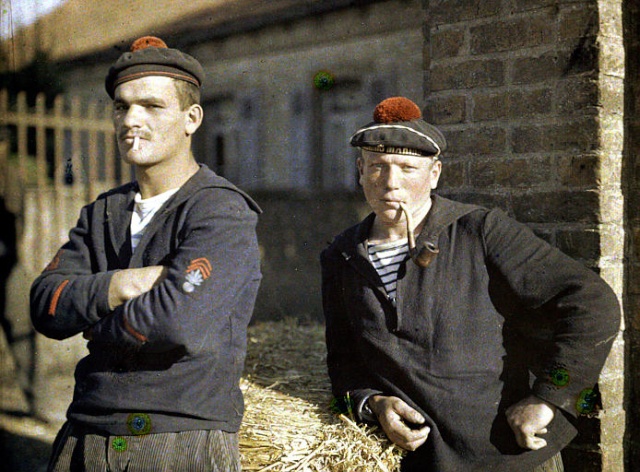 Трудно сказать, откуда они. Возможно, Антверпен или где-то в Африке. Не особо знаком с фронтами, где воевали немецкие морпехи. А французы эти - "морские фузилеры", спешенные матросы то есть, а "марсуаны" - это морпехи как отдельный род войск