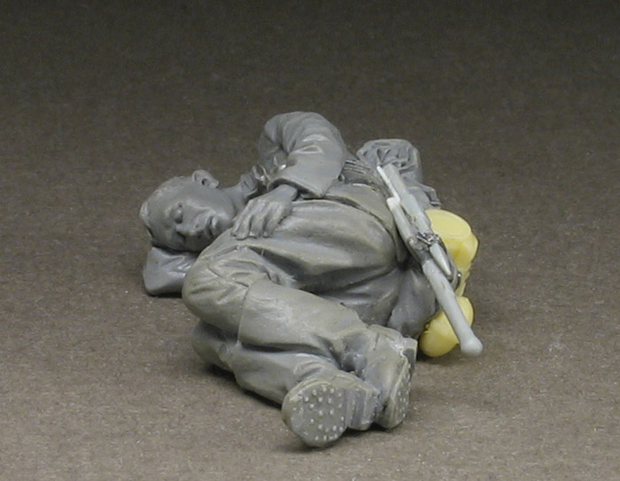 Да, я так же думаю. Двое ни о чем, надо бы им командира и в другом снаряжении. Да и композиционно нужно серию раздвинуть вверх: имея двоих лежащий солдат так и просится третий сидящий на заднице или стоящий на коленях, т.е. командир который бдит, а не дрыхнет.